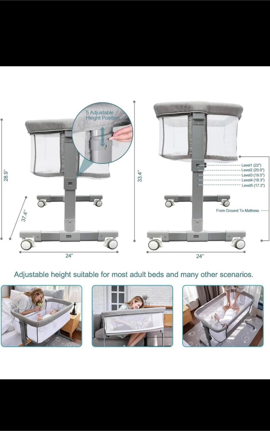 Secure and Stylish: The crib secures to your bed safely and securely using strong straps and leaving no gap; fully ASTM-approved; safe, stylish, and premium-quality design.