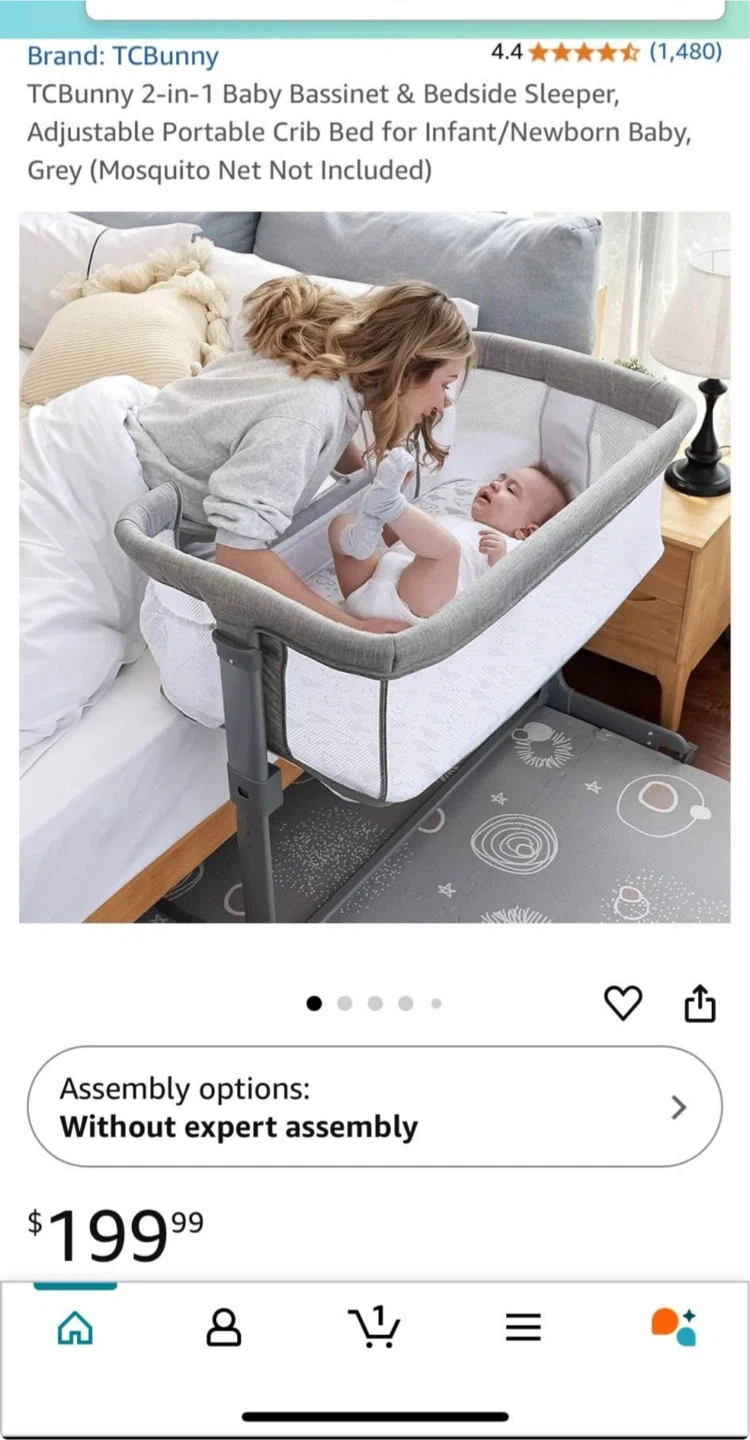 TCBunny 2-in-1 Baby Bassinet & Bedside Sleeper - Grey