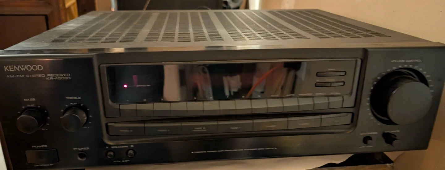 Kenwood KR-A5060 AM/FM stereo receiver. Tested for sound and in great condition.Missing one leg. Video link below