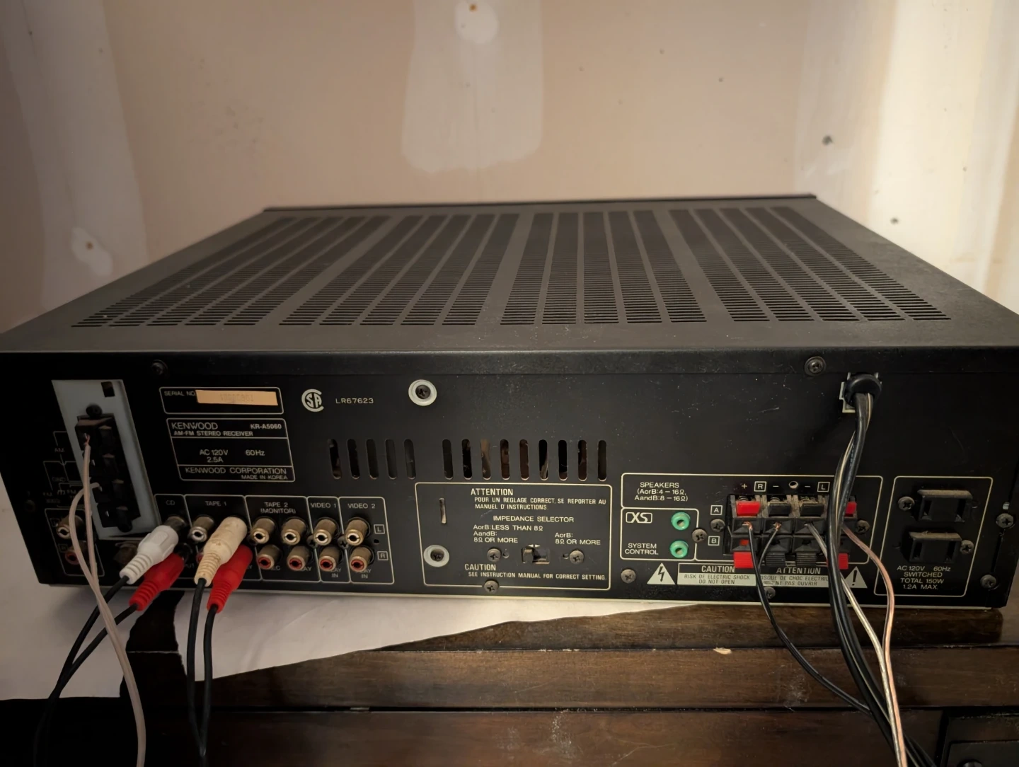 Kenwood KR-A5060 AM/FM stereo receiver. Tested for sound and in great condition.Missing one leg. Video link below