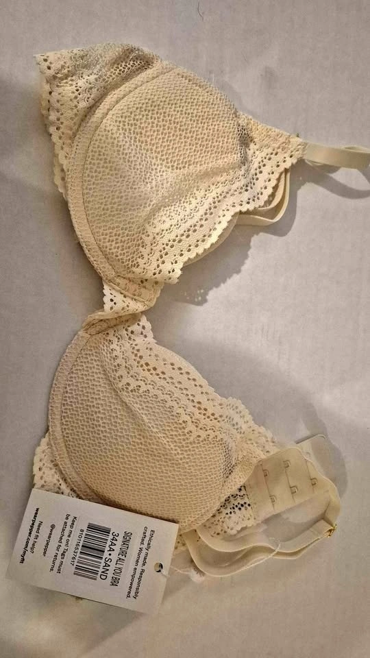 New Pepper Signature All You Bra. Size 34AA. Super comfy and supportive, great for smaller busts. Has original tags still on. Color is sand, a nice neutral shade.