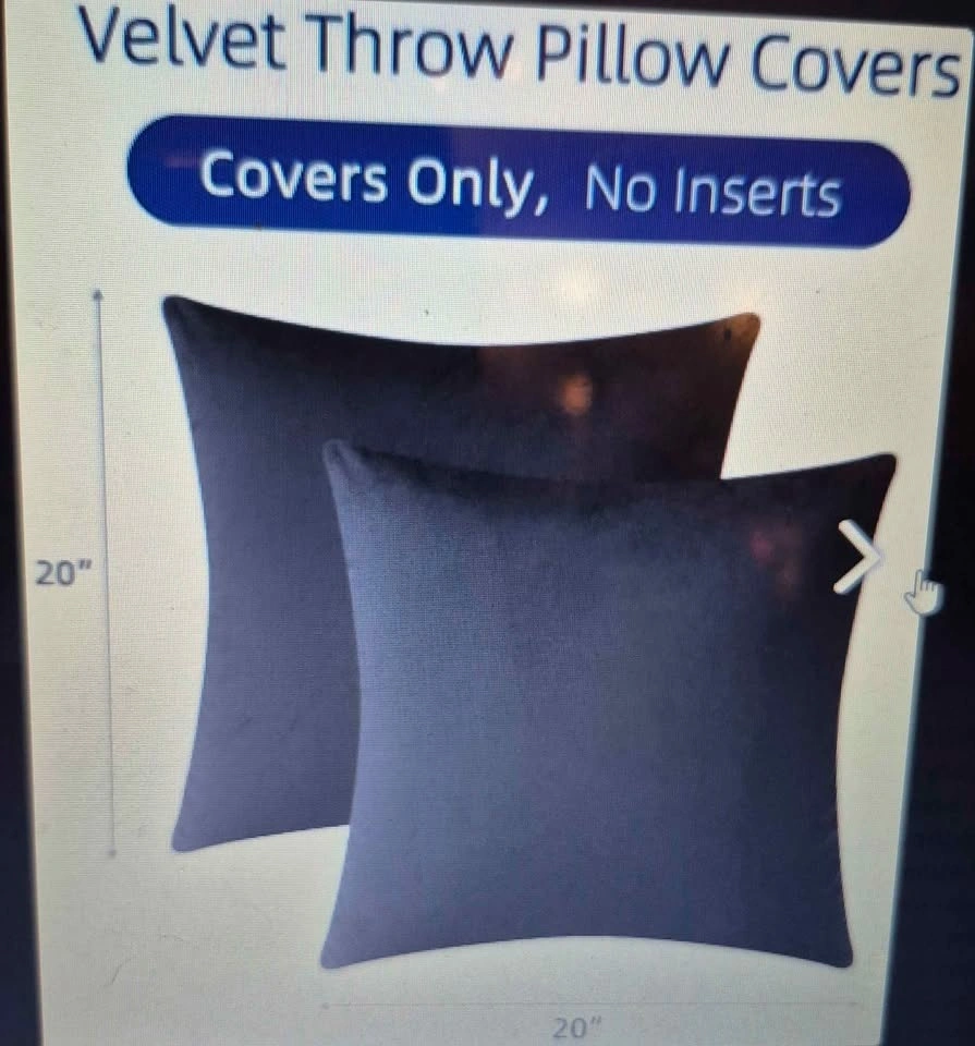 Plush velvet throw pillow covers, 20x20 inches, in a nice dark black color. Each cover has a hidden zipper for a clean look. Just the covers, no pillow inserts included.
