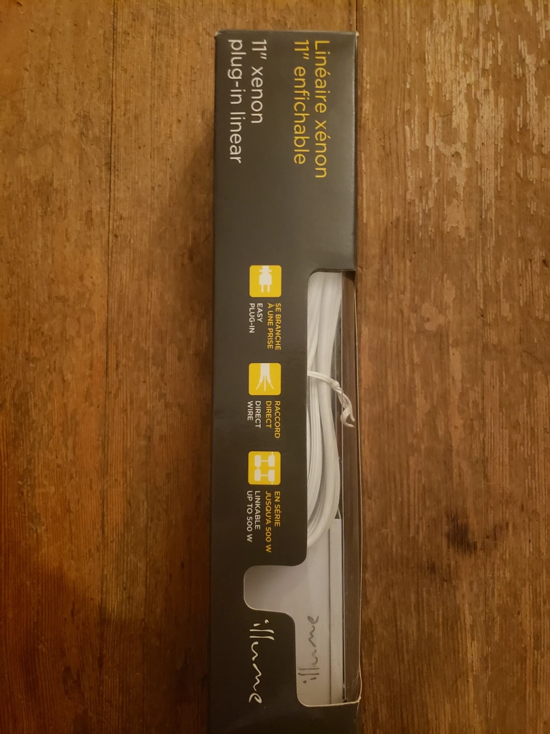 This 11-inch Xenon linear light offers bright, natural daylight. It's plug-in and linkable up to 500W. Lamp life is 5,000 hours.