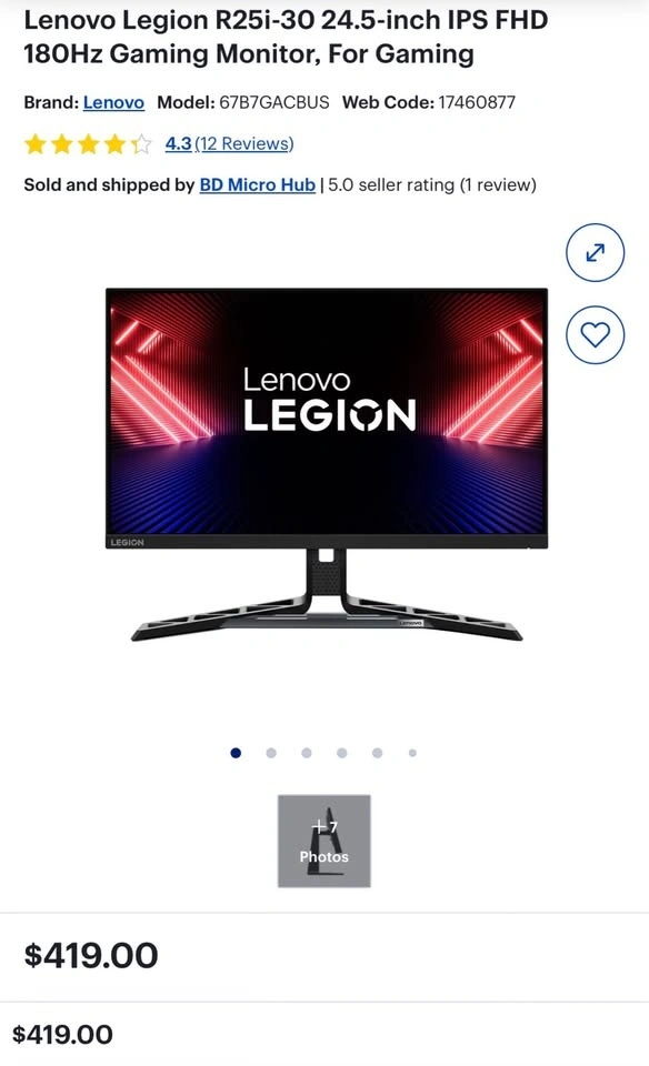 Brand new in box, never used Lenovo Legion R25i-30 24.5-inch IPS FHD 180Hz Gaming Monitor with a 0.5ms response time. This is a 24.5-inch monitor.