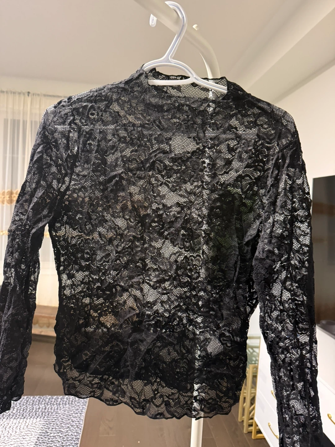 Buy & SellBlack Lace Long Sleeve TopBlack Lace Long Sleeve Top$10This is a black lace long sleeve top with a mock neck. It's made of a delicate floral lace pattern. The material is lightweight and sheer.ConditionNewSizeMediumBrandChicwishWHERE TO MEETCheck LocationView MapSELLERverifiedEmmaNW Brampton1616 reviews0 chats·0 favorites·5 viewsSEND CHAT TO SELLERHi Emma! I’m interested in your listing.Hi Emma! I’m interested in your listing.Get the Karrot app to chatSign In to chat