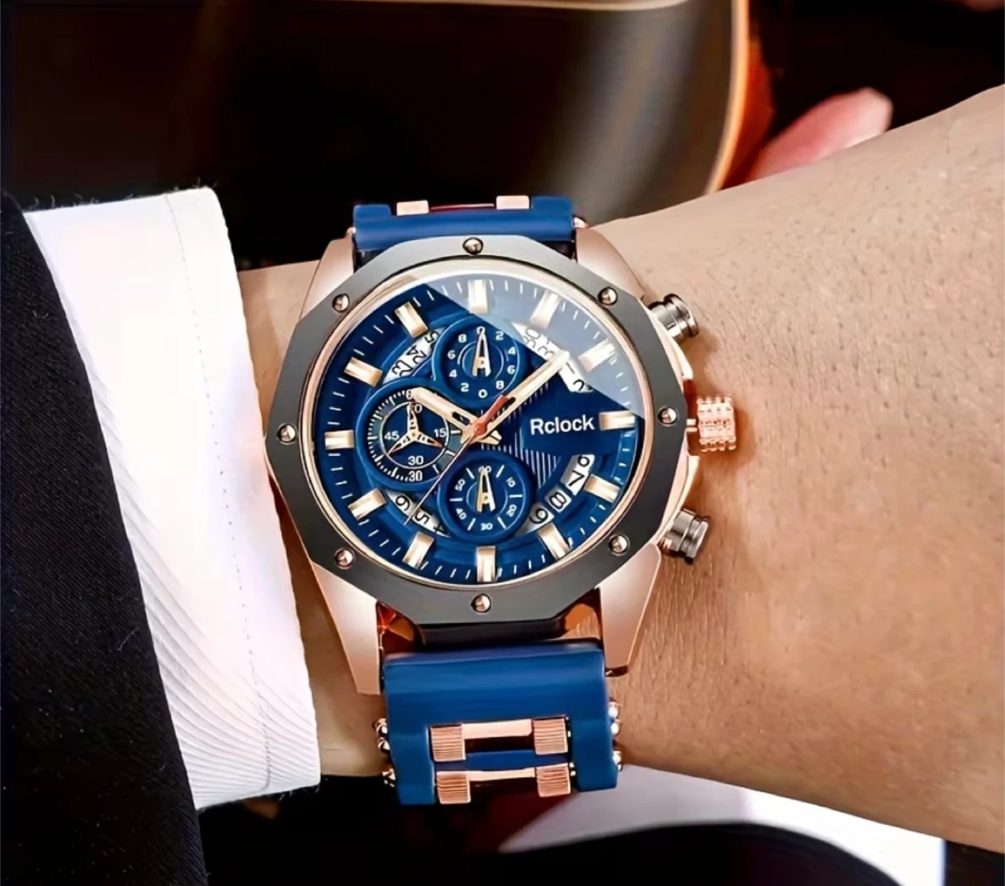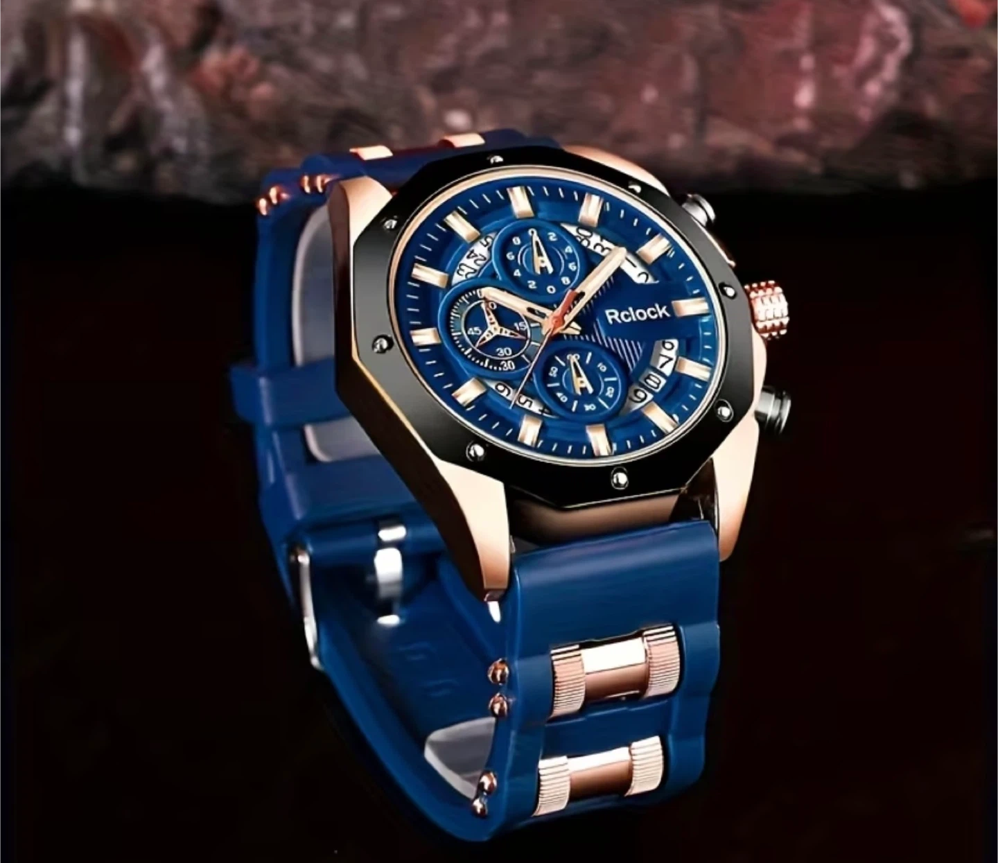 Rclock Chronograph Watch - Blue & Rose Gold