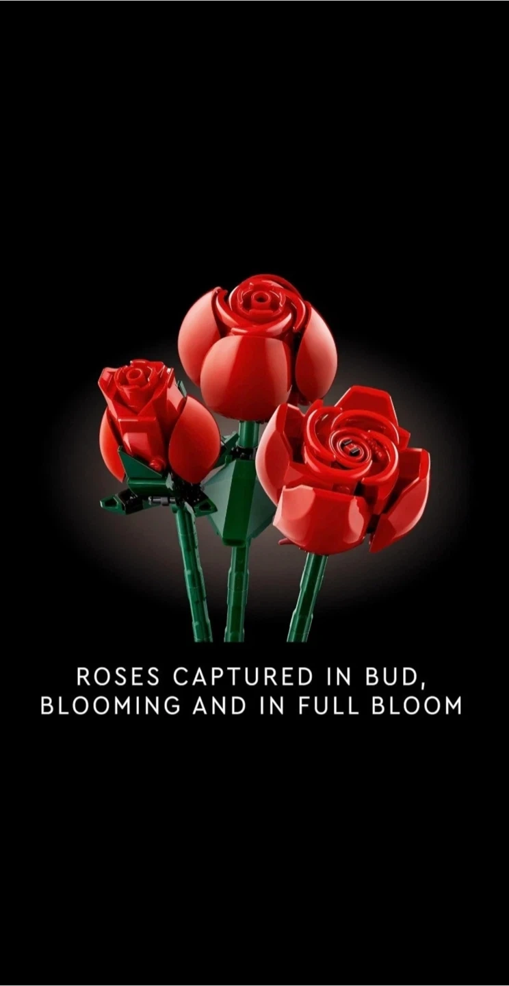 Blooming buds – The LEGO Icons Bouquet of Roses building kit depicts roses captured at various stages of flowering, including 4 roses in full bloom, 4 blossoming and 4 in bud