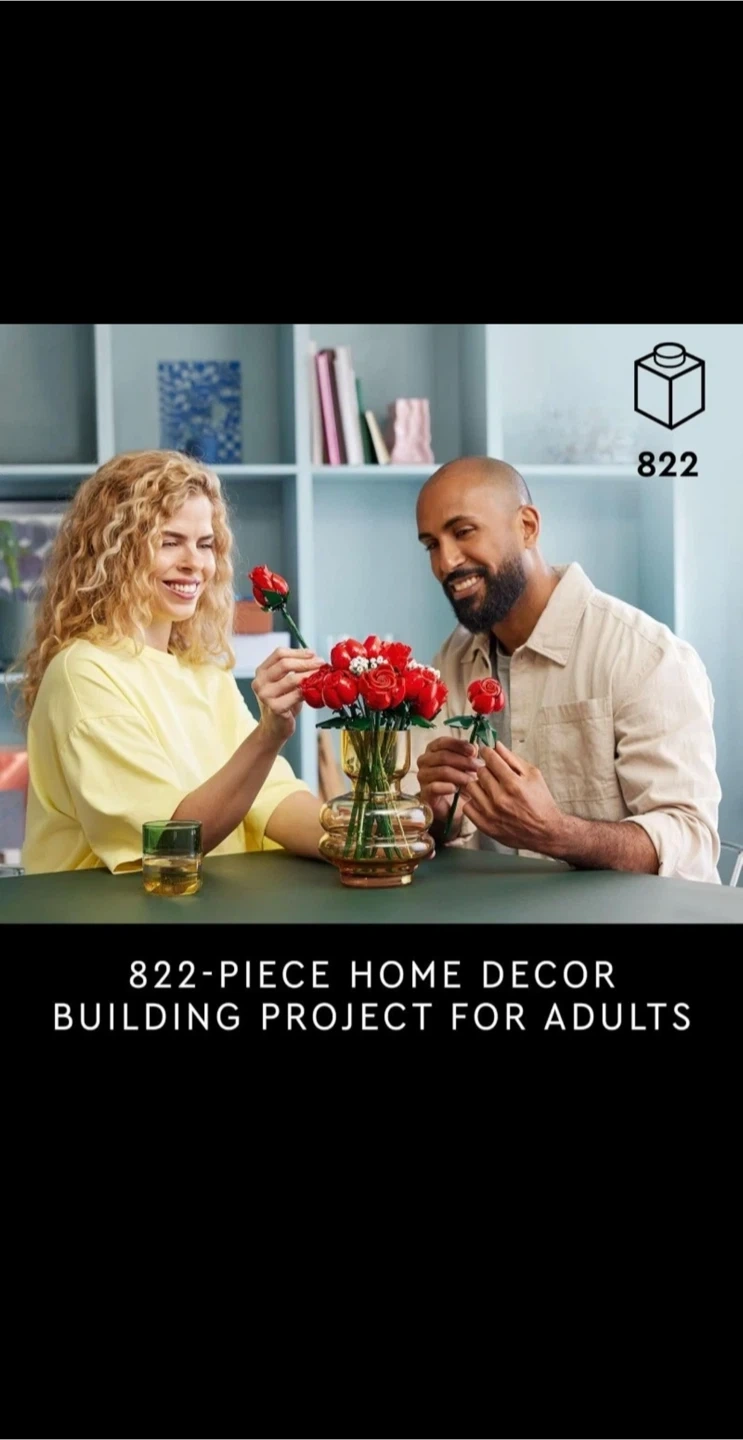 Buildable home decor bouquet – Indulge yourself or join friends and family for a mindful project with the LEGO Icons Bouquet of Roses building set for adults