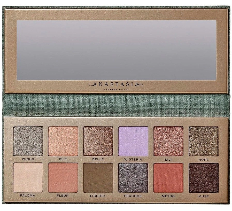 This Palette Contains: - 9 x 0.047 oz/ 1.3 g Eyeshadows in Wings (metallic silver green with sparkling reflect), SLE (metallic blonde gold), Belle (metallic antique bronze), Lili (metallic rose gold with multidimensional reflects), Hope (metallic olive green with gold reflects), Fleur (matte golden peach), Liberty (matte muted hunter green), Peacock (duo-chrome blueish-green brown with pink reflects), Muse (metallic dark chocolate brown) - 3 x 0.047 oz/ 1.3 g Pressed Pigments For Face & Body in Wisteria (matte pastel lavender with sparkling reflects*), Paloma (matte creamy ivory with sparkling reflects*), Metro (matte rich clay*)