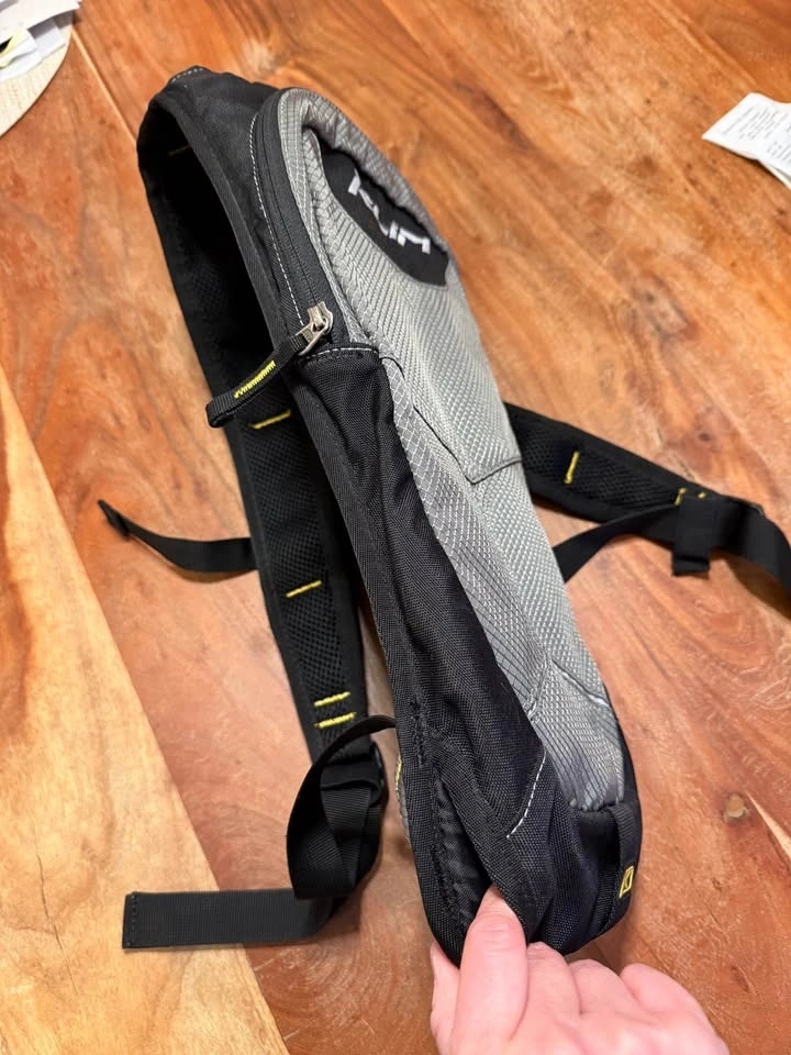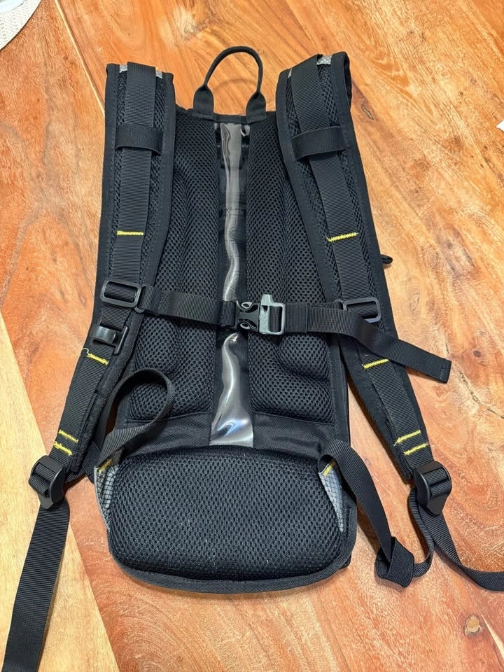 Low profile hydration pack (does not come with the reservoir, easily replaceable with any similar reservoir). Has reflective material for visibility, sternum strap for comfort, internal pocket for keys and wallet, and very comfortable shoulder straps. Features a clear window to visually check the volume without removing the reservoir. Pick up near New West station or downtown Vancouver by arrangement.