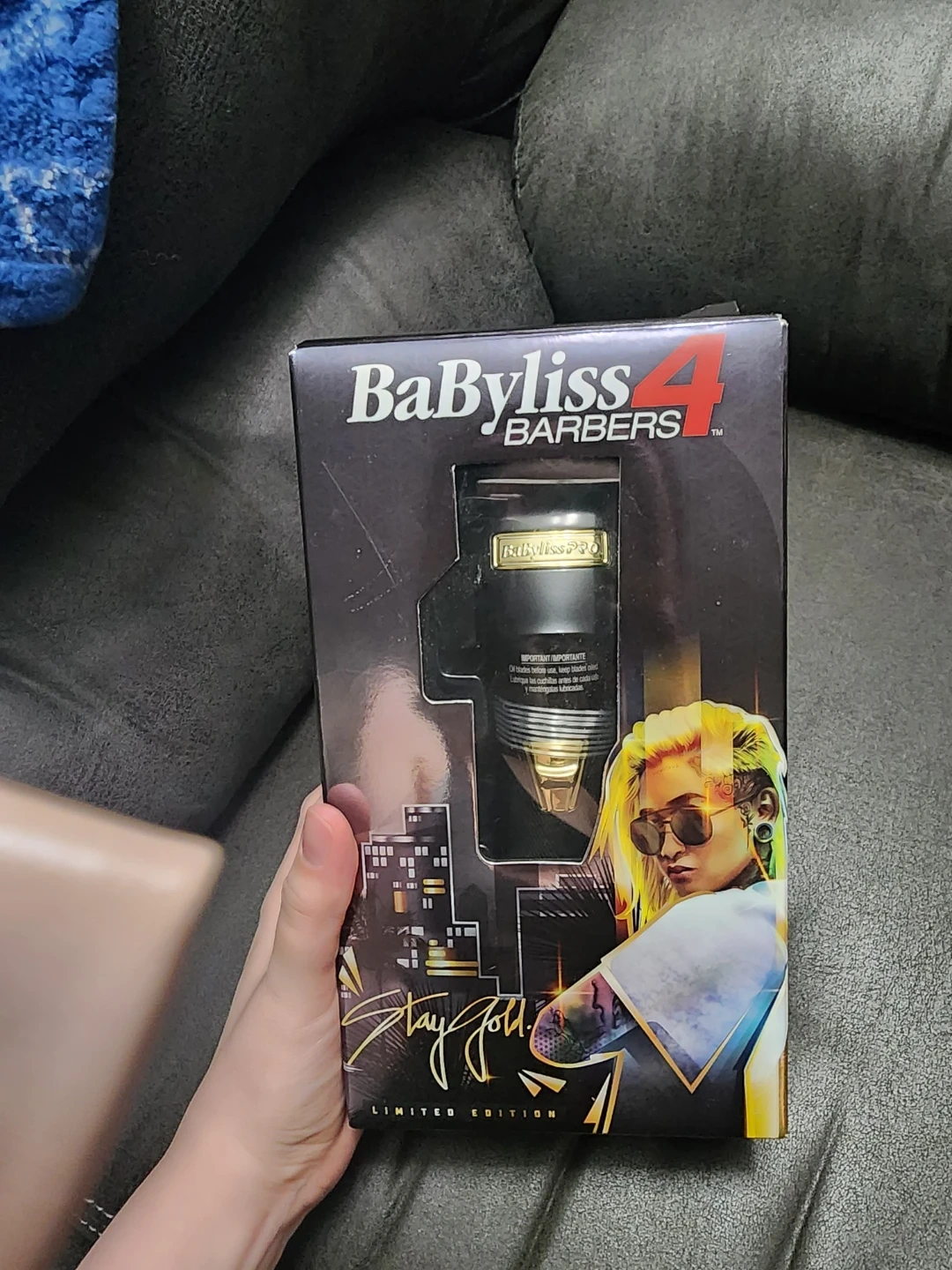 This is a BaByliss 4 Barbers Limited Edition trimmer. It's a gold-themed model designed for barbers. Includes original packaging.
