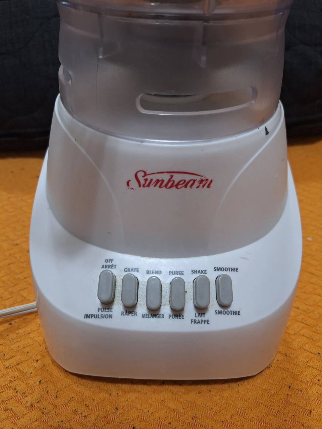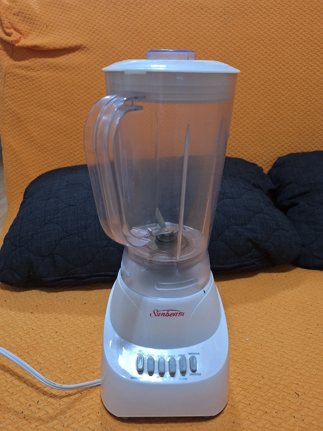 Buy & SellSunbeam BlenderSunbeam Blender$10This Sunbeam blender is white and features multiple speed settings including pulse, grate, blend, puree, shake, and smoothie. It's 120V, 350W. ConditionGoodBrandSunbeamWHERE TO MEET29th Avenue StationView MapSELLERverifiedJoyceRenfrew Collingwood922 reviews0 chats·0 favorites·3 viewsSEND CHAT TO SELLERHi Joyce! I’m interested in your listing.Hi Joyce! I’m interested in your listing.Get the Karrot app to chatSign In to chat