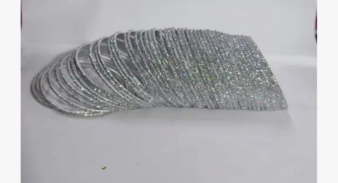 Sparkly silver bangles covered in glitter. These bracelets add a touch of shine to any outfit. A set of bracelets like these is great for parties or festive occasions!