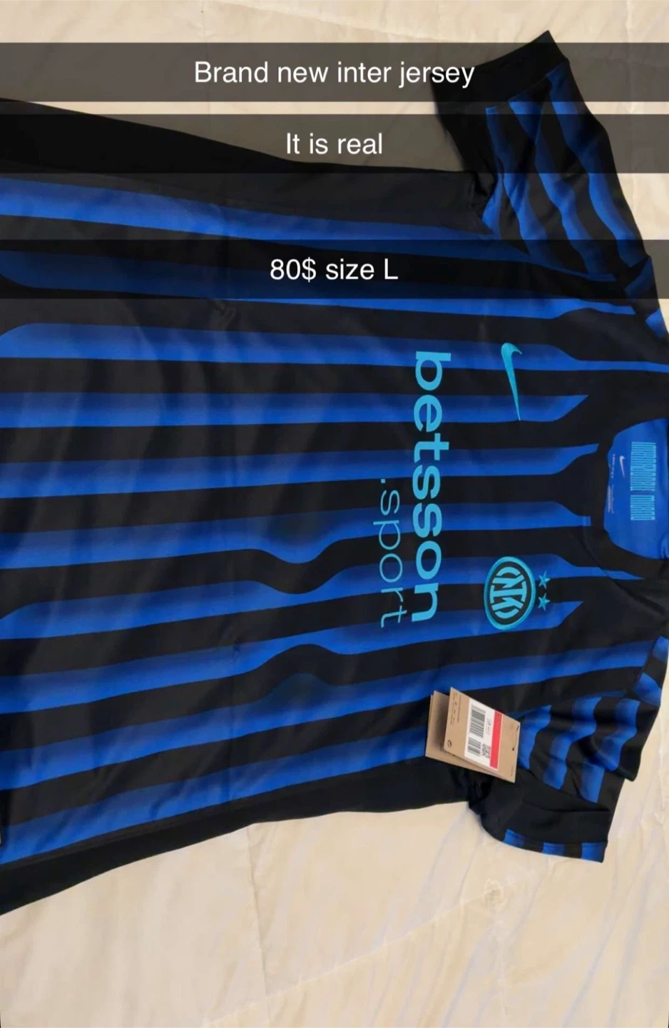 Buy & SellInter Milan Jersey Size LInter Milan Jersey Size L$64Brand new Inter Milan jersey it is real a gift from family in Italy wrong size tho Size LConditionNewBrandInter MilanWHERE TO MEETCheck LocationView MapSELLERMatteoCapitol Hill181 review0 chats·0 favorites·2 viewsSEND CHAT TO SELLERHi Matteo! I’m interested in your listing.Hi Matteo! I’m interested in your listing.Get the Karrot app to chatSign In to chat