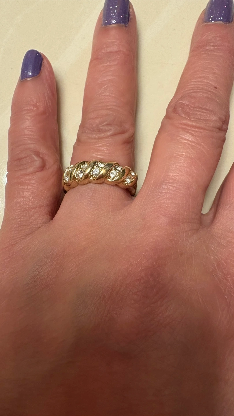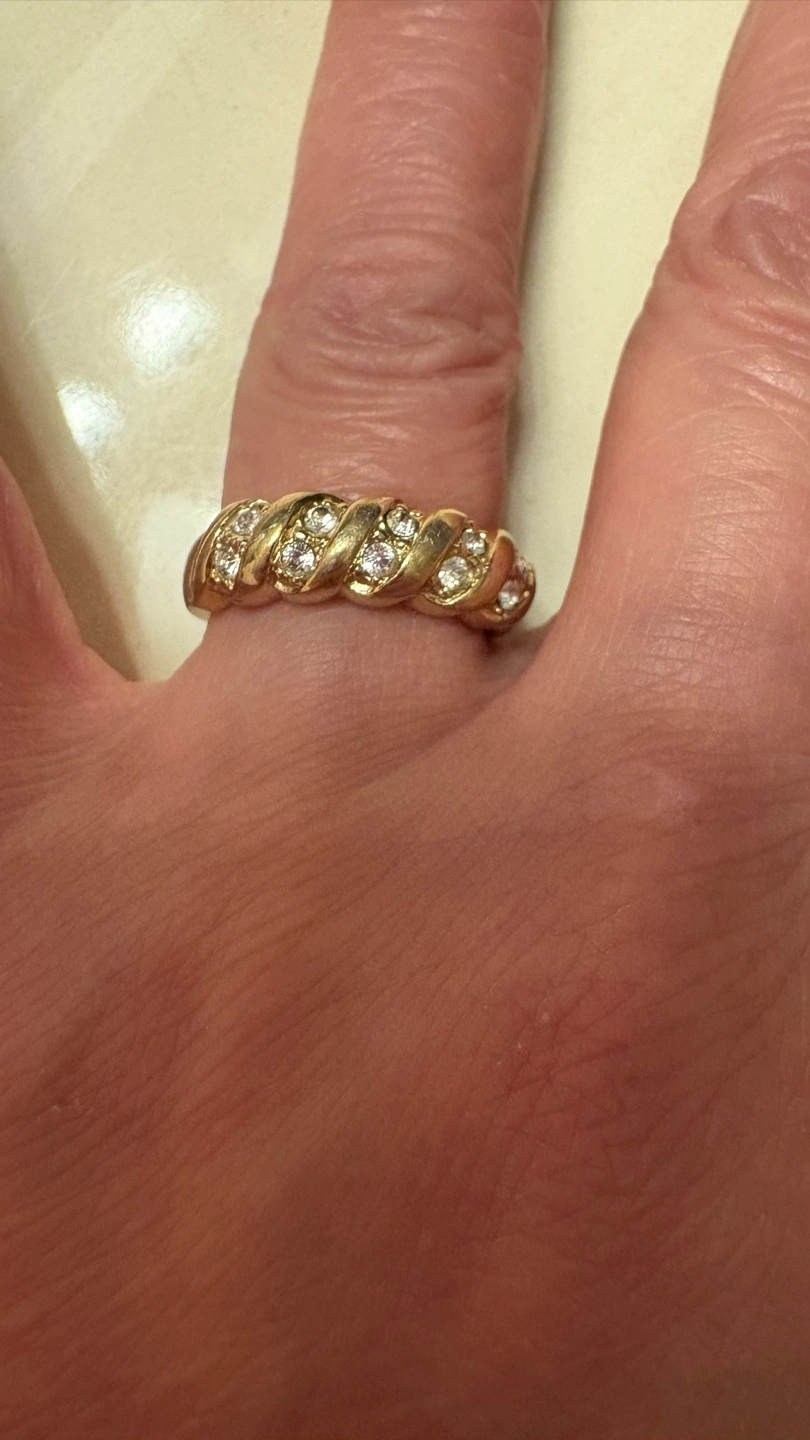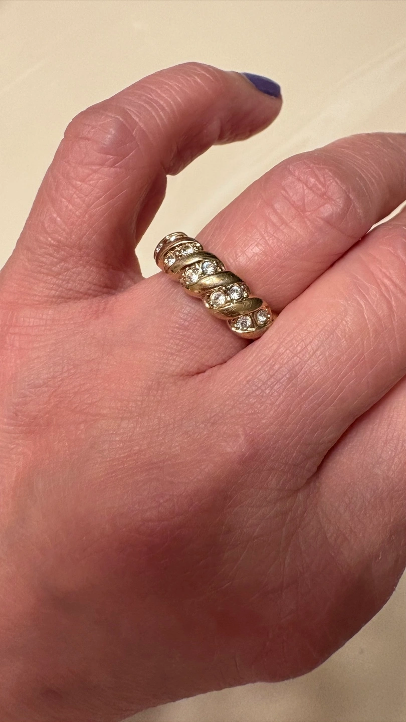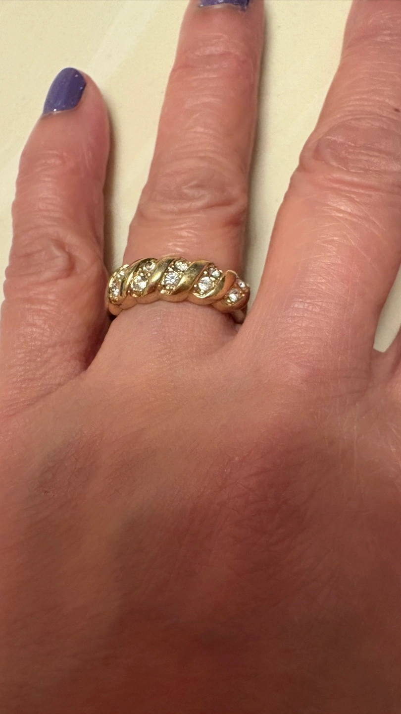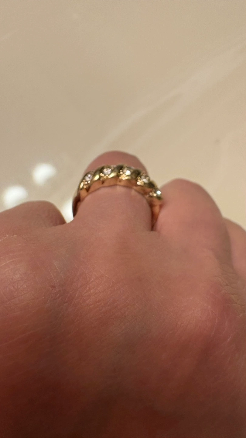 It's adorned with small clear crystals. A lovely addition to any jewellery collection , just like real gold & diamond π ring , great for everyday use .