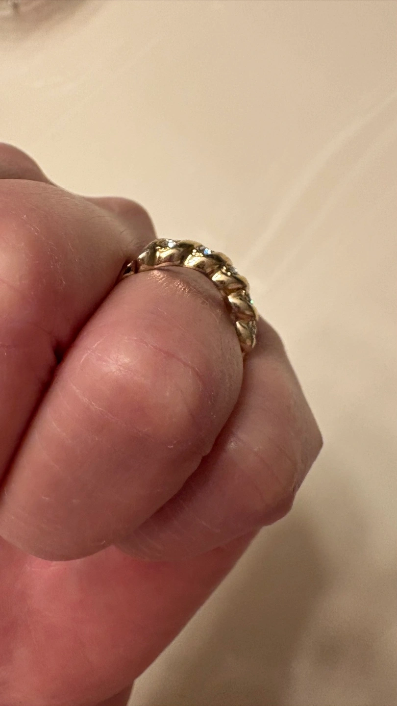 It's adorned with small clear crystals. A lovely addition to any jewellery collection , just like real gold & diamond π ring , great for everyday use .