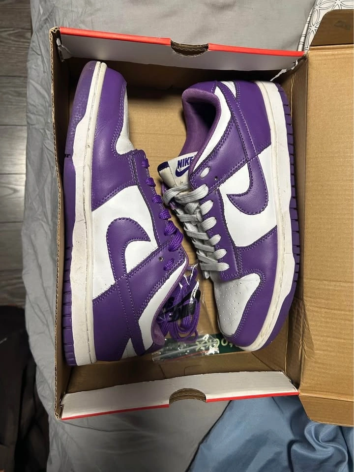 Buy & SellNike Dunk Low Championship PurpleNike Dunk Low Championship Purple$80Size 9.5. Slight crease. Comes with purple laces.WHERE TO MEETCheck LocationView MapSELLERGillianW Maple Ridge100 reviews0 chats·0 favorites·7 viewsSEND CHAT TO SELLERHi Gillian! I’m interested in your listing.Hi Gillian! I’m interested in your listing.Get the Karrot app to chatSign In to chat