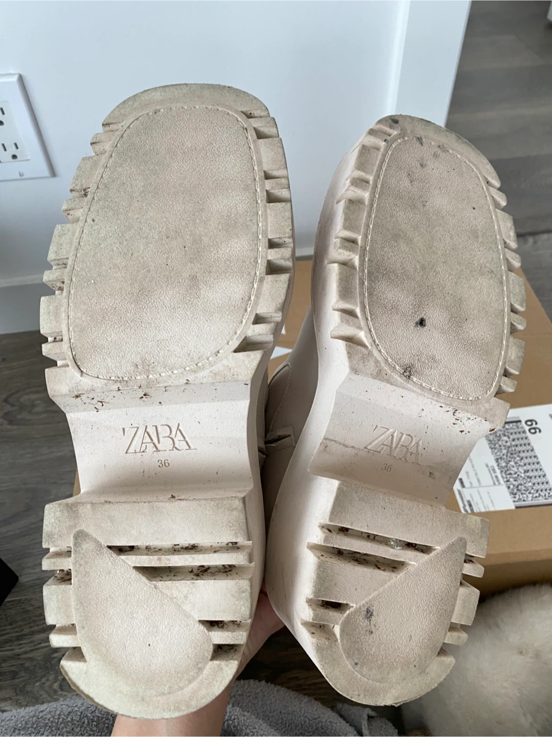ZARA Cream Platform Lug Sole Boots Size 36