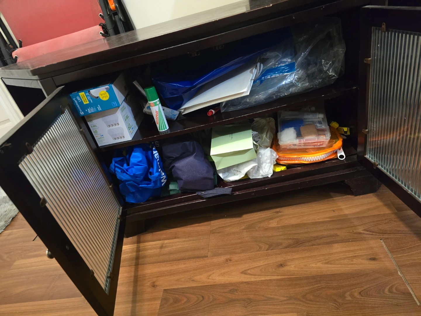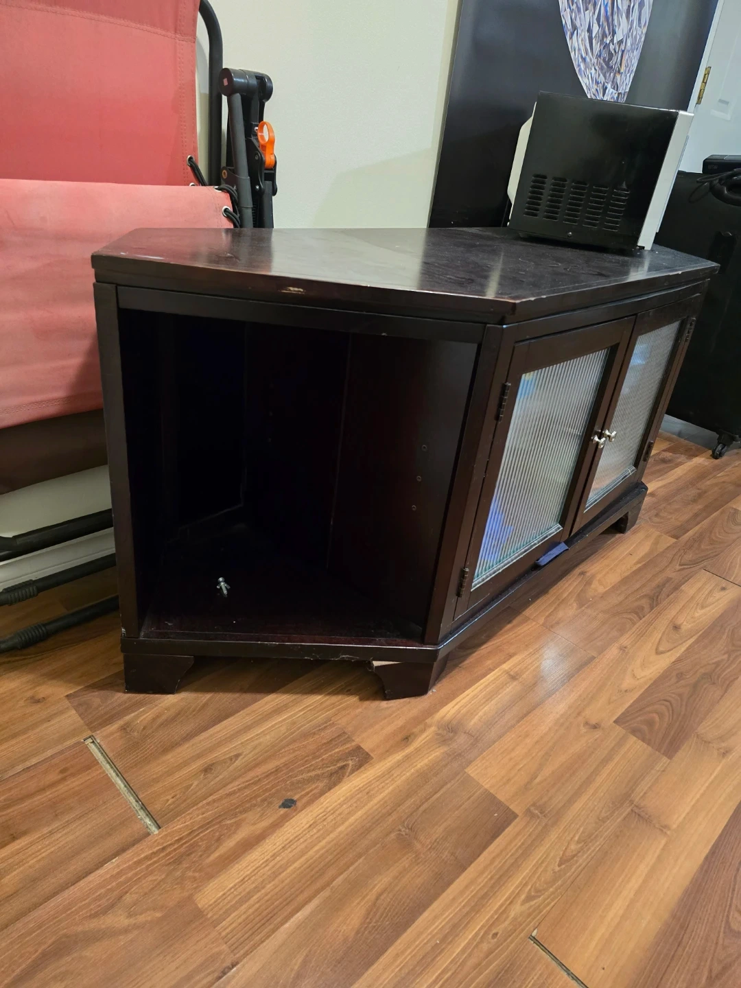 Dark Wood Corner TV Stand with Glass Doors