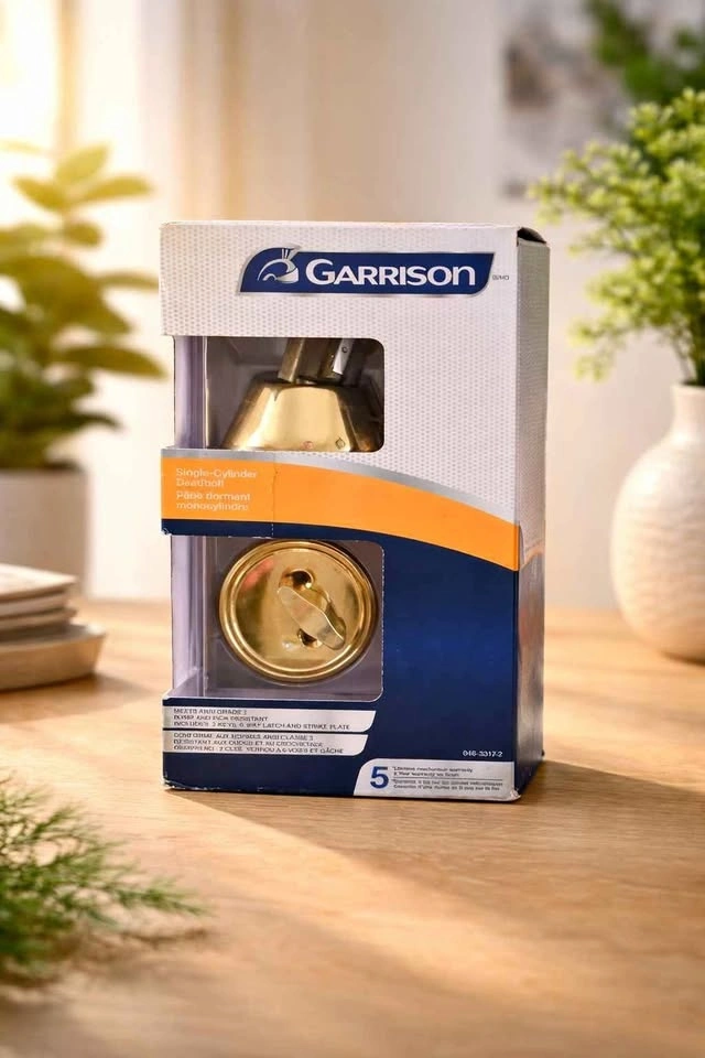 Secure your home with these brand-new Garrison Single-Cylinder Deadbolts. These are high-security locks designed for durability and ease of installation. They feature a polished brass finish and are engineered to meet strict safety standards. Meets ANSI Grade 3 standards for residential security. Specially designed to be both bump and pick resistant. Each box includes 2 keys, a 6-way adjustable latch, and the strike plate. Features a lifetime mechanical warranty and a 5-year warranty on the finish. These are reliable, professional-grade deadbolts perfect for a home upgrade or a rental property. Pick Up: Victoria.