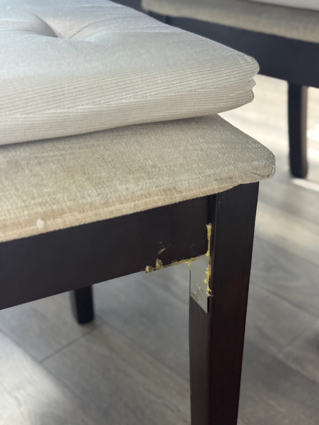 Two chairs were slightly wobbly, so the legs have been secured with metal plates for stability
