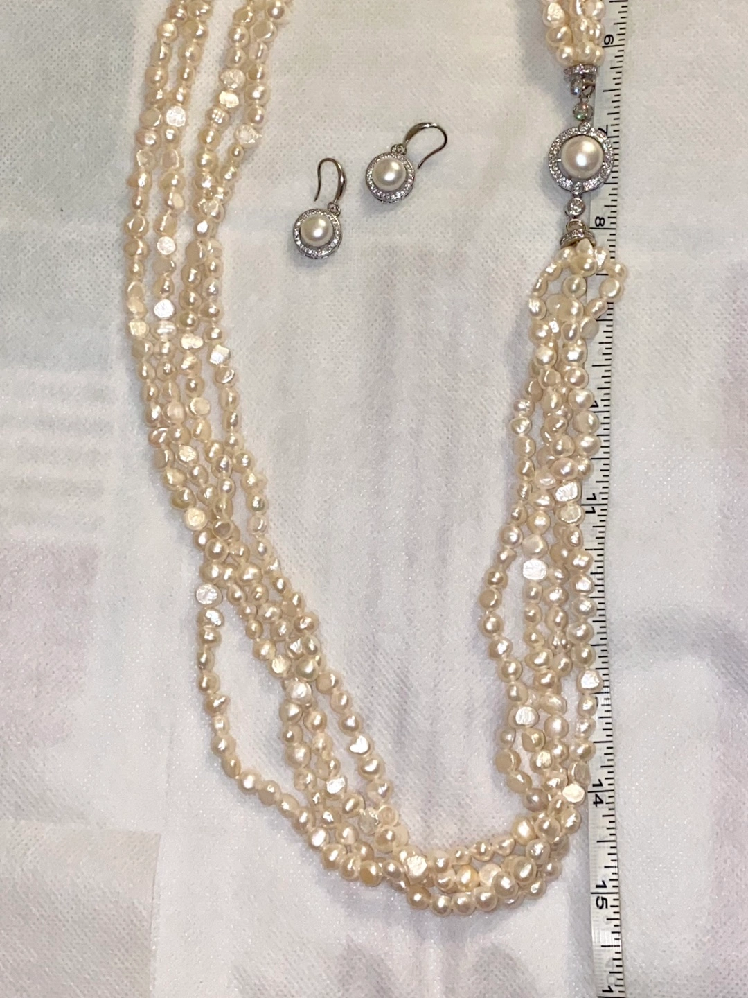 960Earrings has tiny 925 stamp Natural pearls 4 strands necklace Brand new ! Pearls are really perfect quality! Perfect for wedding, bridal, ceremonies