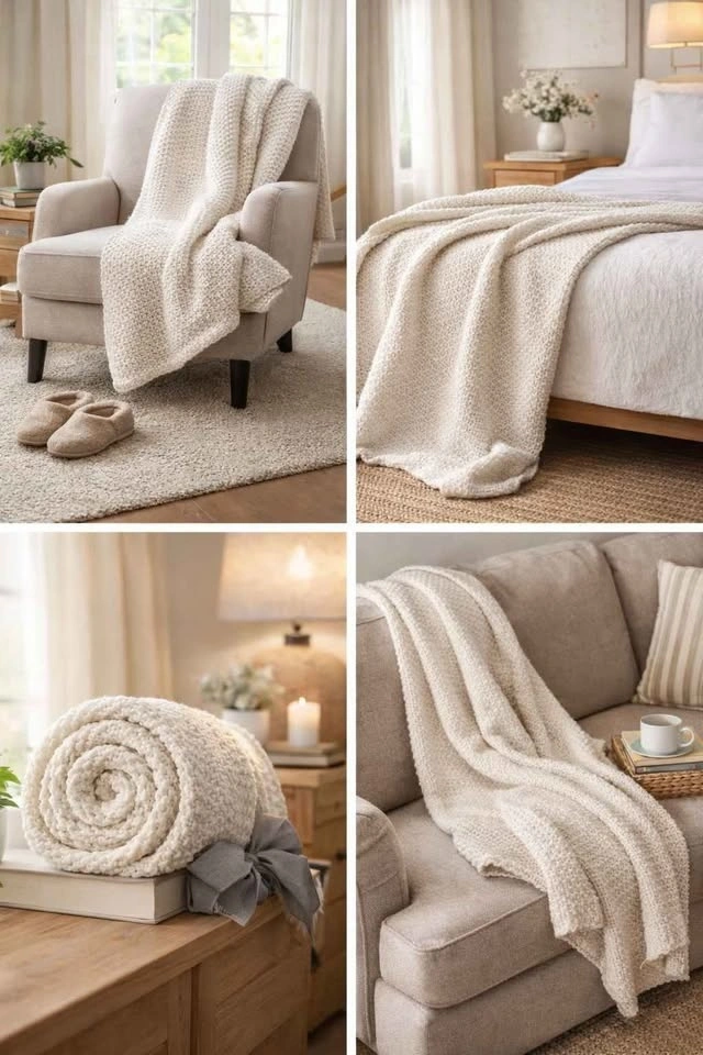 NEW Better Homes & Gardens Cozy Knit Throw Blanket - Soft White