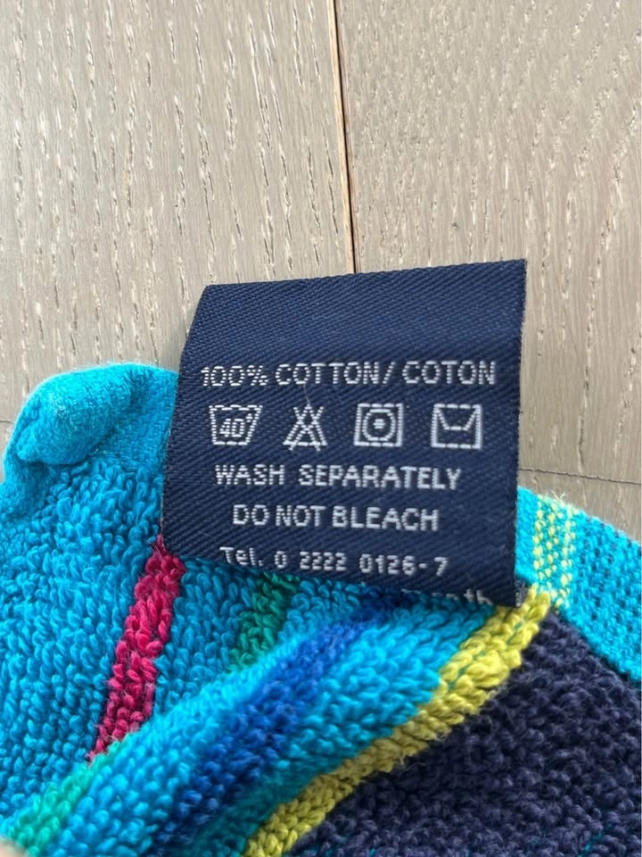 Two thin beach towels, one red and one blue, purchased in Thailand. They feature maps of Thailand and are made of 100% Cotton by Lucky Clover. Each towel is approximately 27" wide and 57" long. Let me know if you're interested!