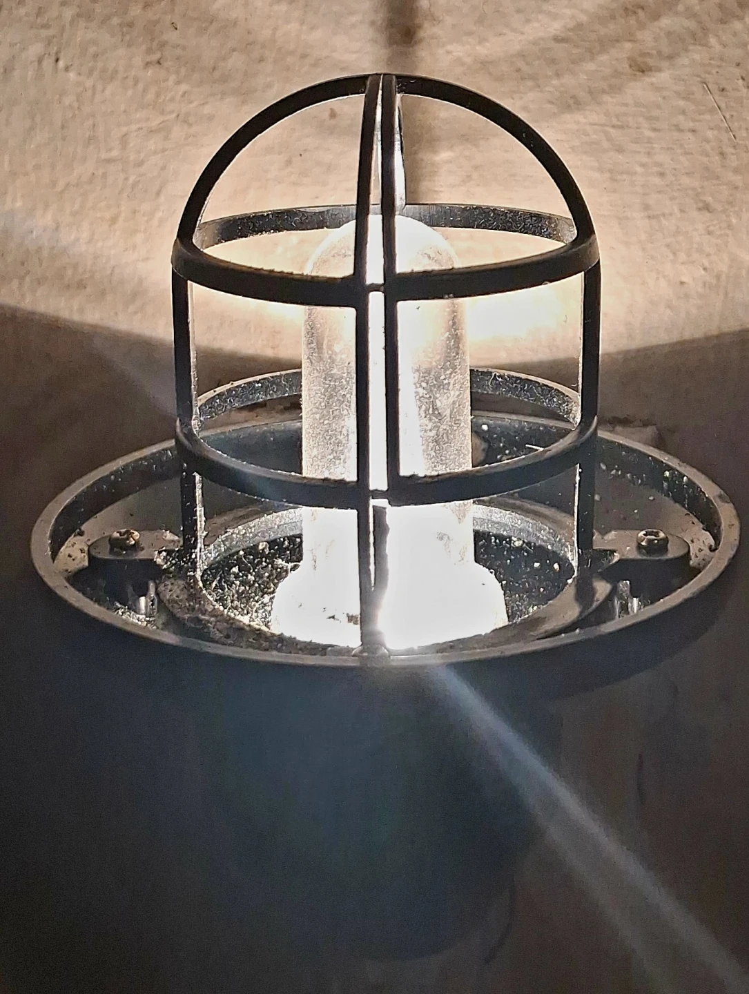 This is a black outdoor/indoor lantern light fixture. It has a protective metal cage around the glass. Mount it outside for your porch or walkway! Pick up only unless near intersection of Oxford and Gammage Street.