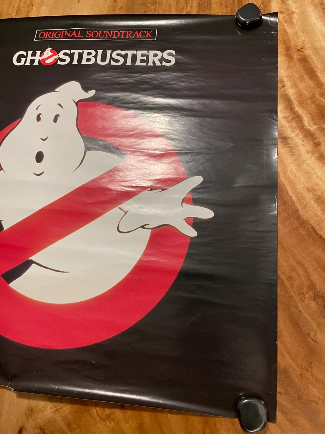 This is a Ghostbusters original soundtrack poster. It features the iconic Ghostbusters logo and Slimer. Great for any fan of the classic movie! This is an original that was sent to music stores to promote the soundtrack in 1984. 24” x 24”.