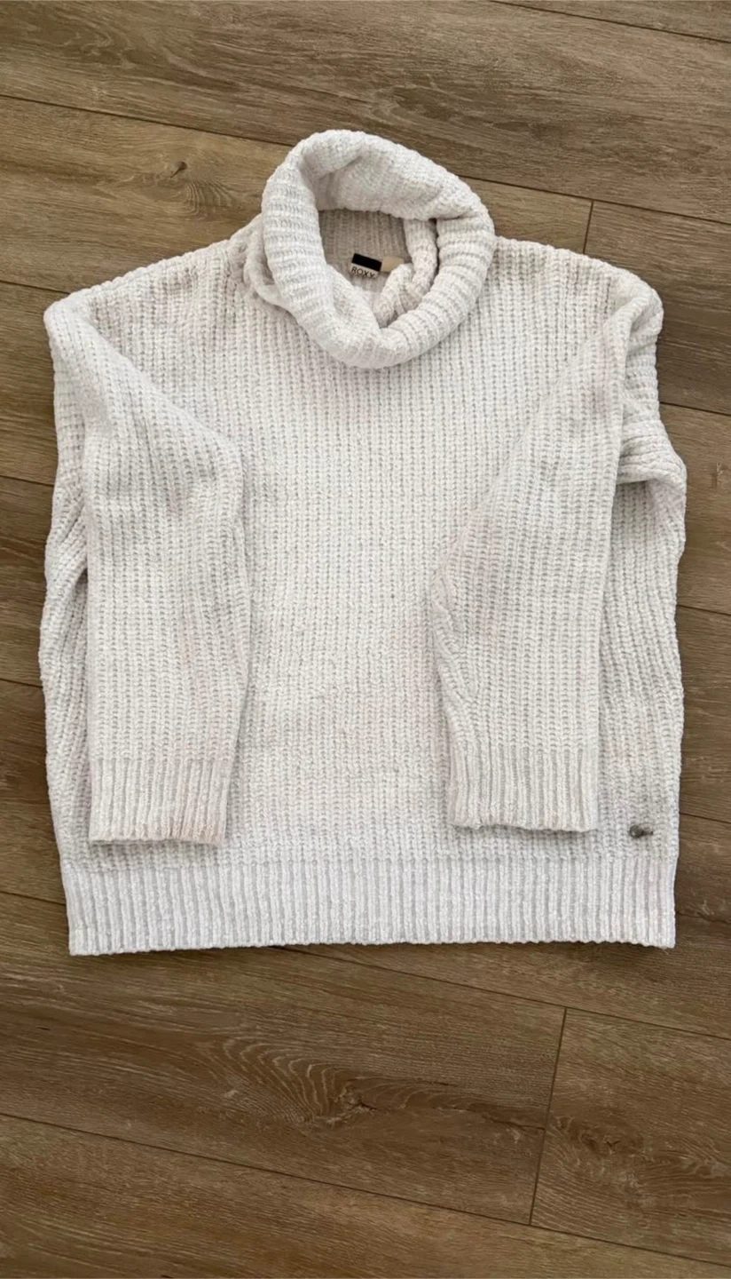 Cozy white knit sweater from Roxy. It's a size medium with a comfortable cowl neck. Great for cooler weather!