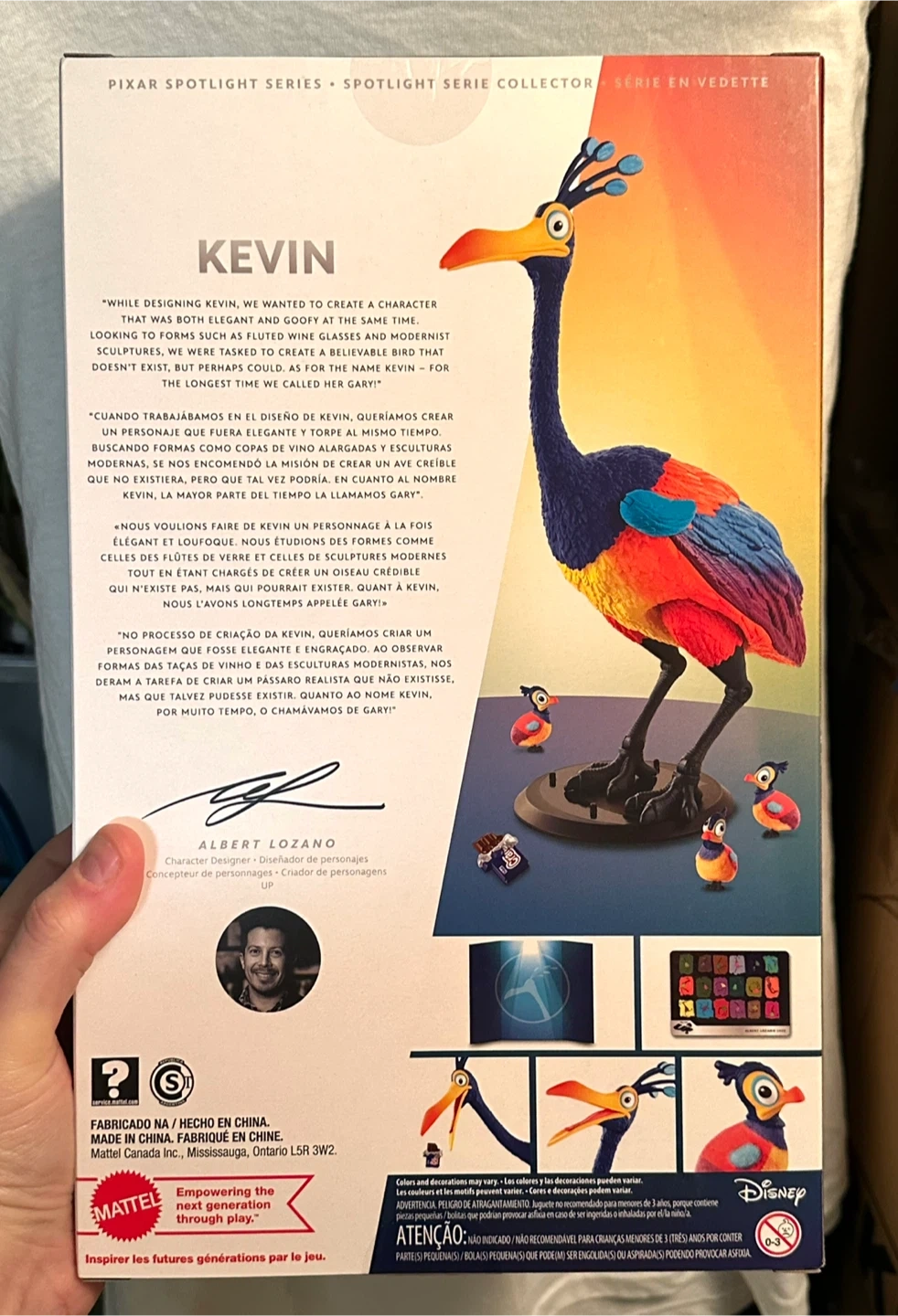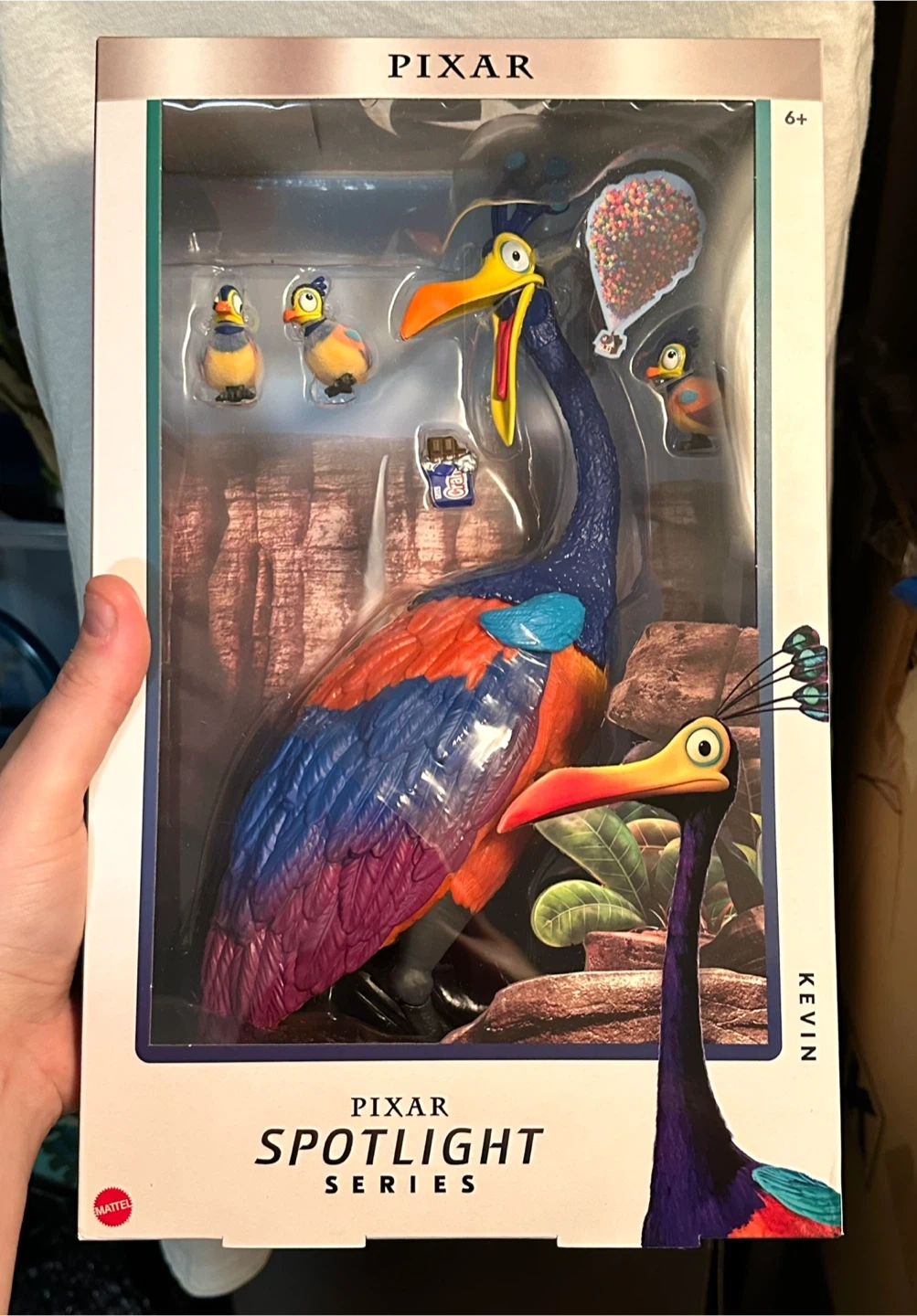 This Mattel Pixar Spotlight Series figure features Kevin from the movie Up. It comes with accessories and is recommended for ages 6 and up. This collectible is great for Pixar fans!