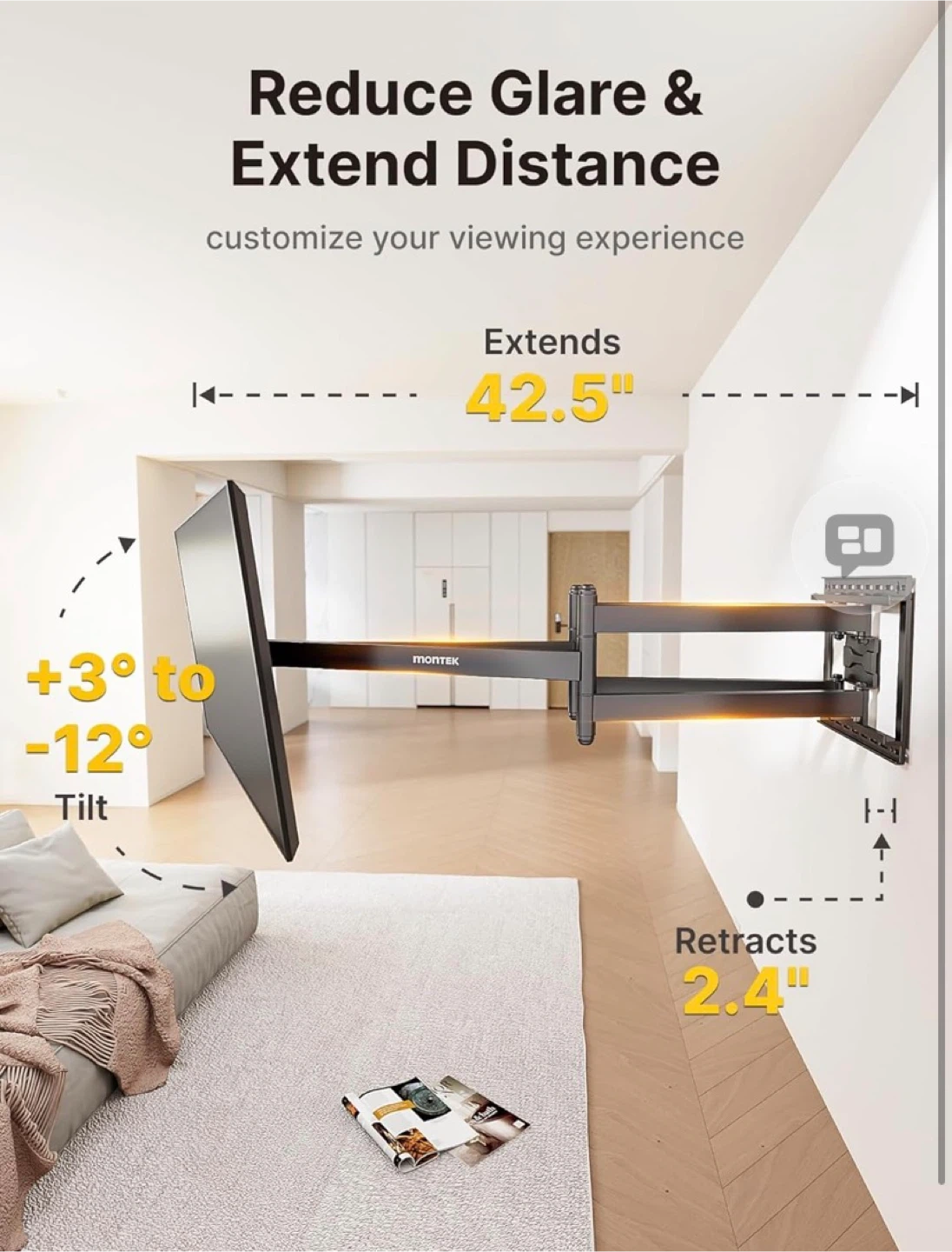 MONTEK Full Motion TV Wall Mount for 43"-90" TVs