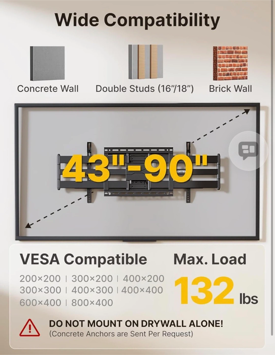 MONTEK Full Motion TV Wall Mount for 43"-90" TVs