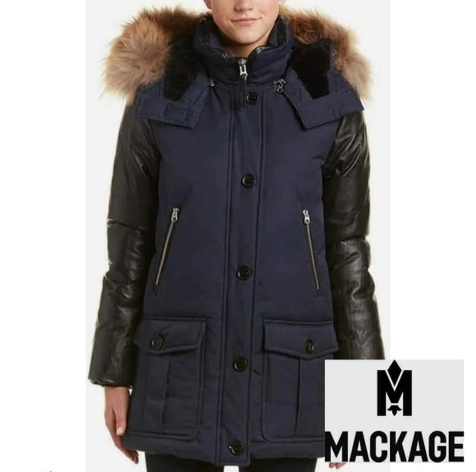 Mackage XXS Winter Jacket Navy & Leather Sleeves