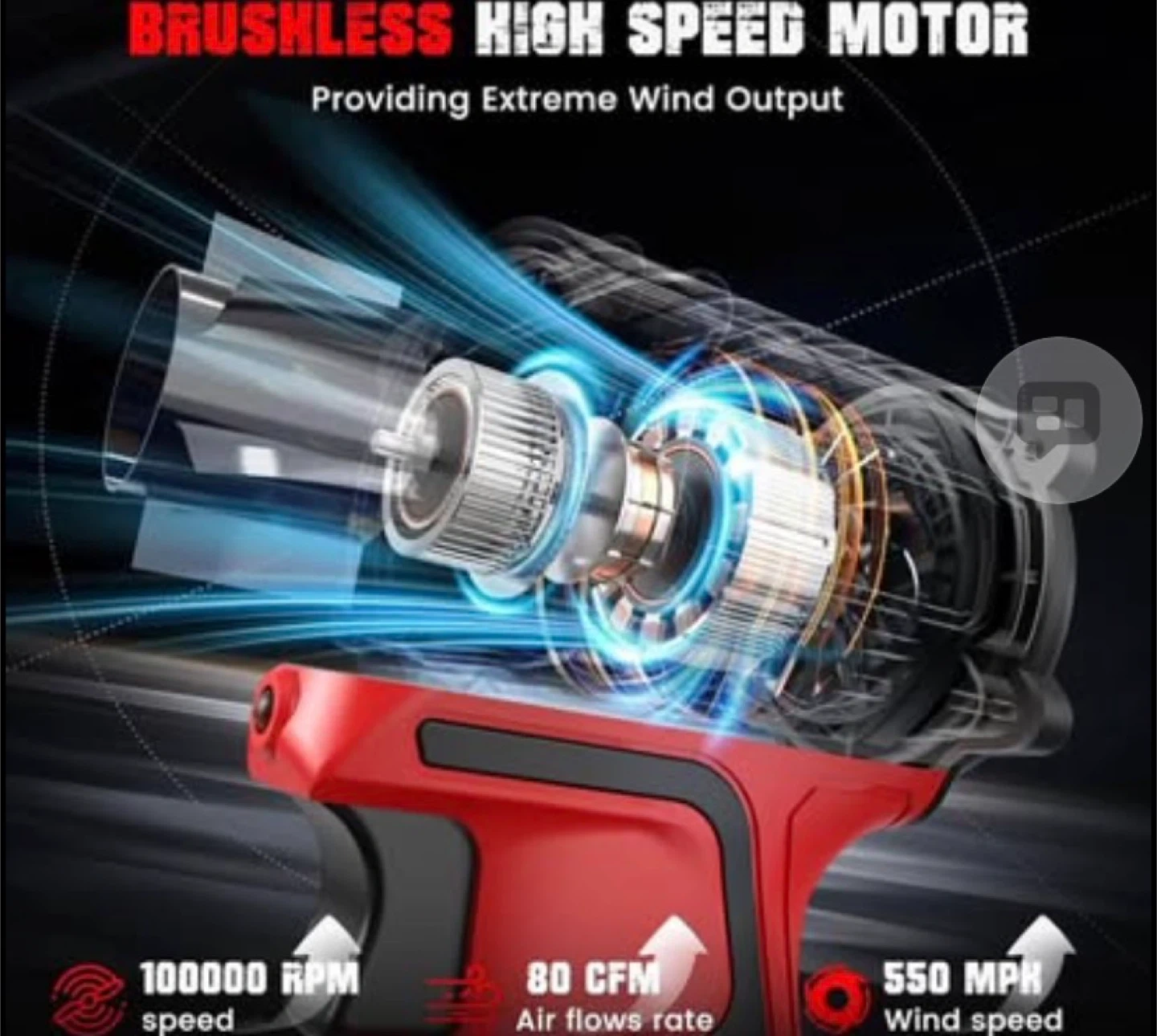 Air Duster 380W Brushless HighSpeed Motor 100,000RPM Fit for Milwaukee 18V Battery Variable Speed Air Blower for Camping Jobsite & Car-Service(Battery not Included)