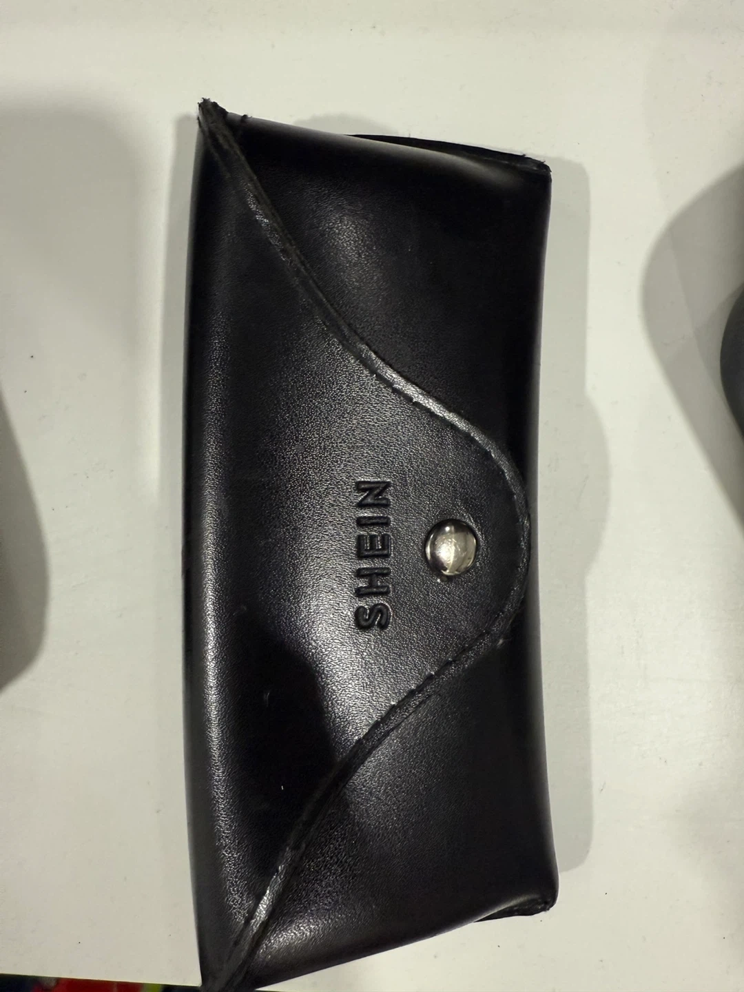 This is a black faux leather eyeglass case from SHEIN. It's a simple snap-closure case designed to protect your glasses. The faux leather material offers durability and a classic look.
