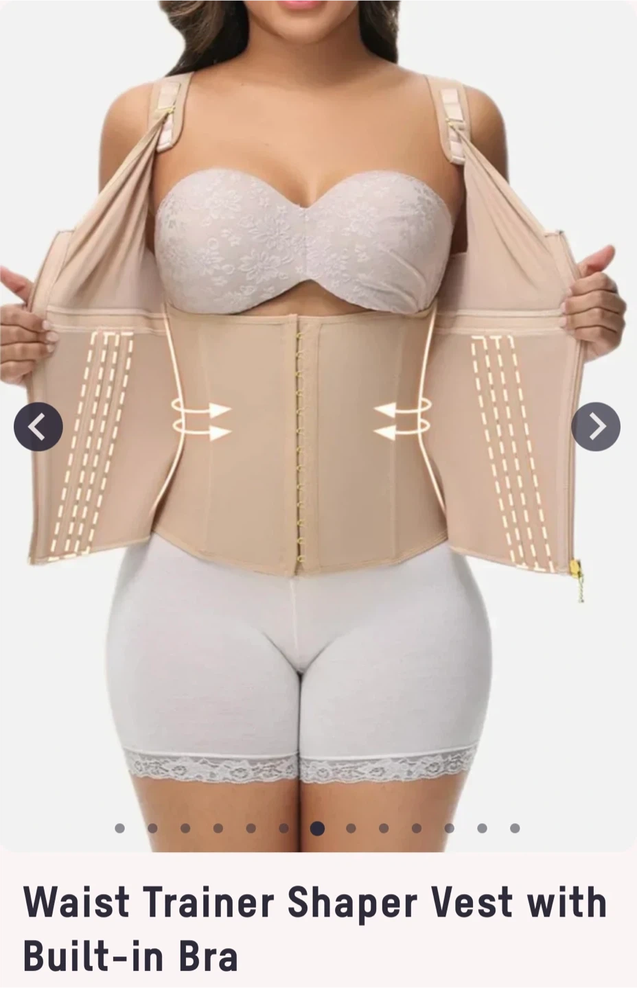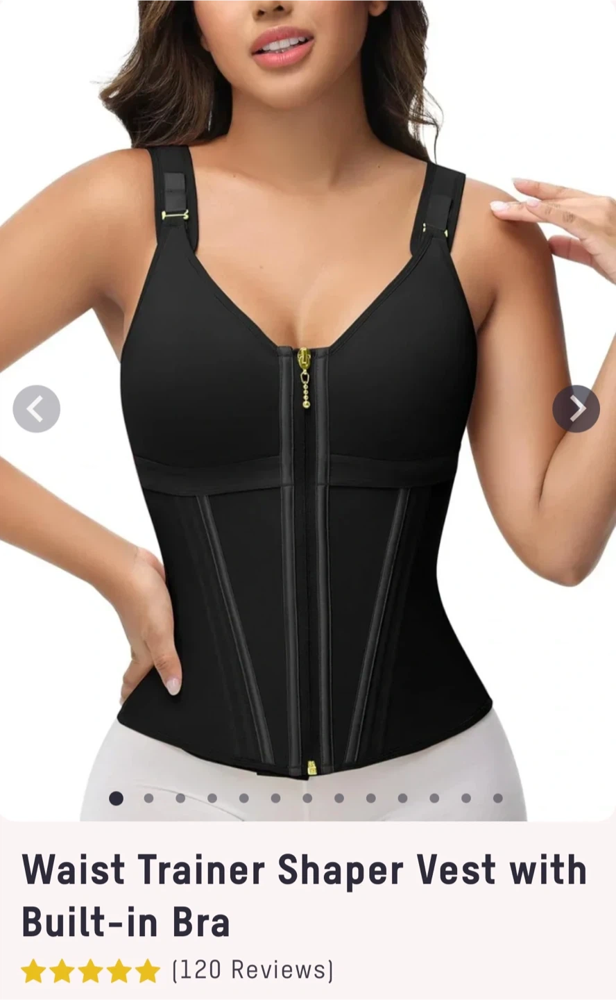 This waist trainer shaper vest comes with a built-in bra for added support. It features a front zipper closure and adjustable straps. The design offers shaping for your midsection.