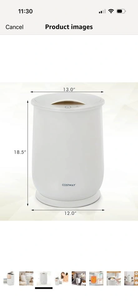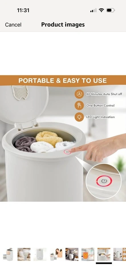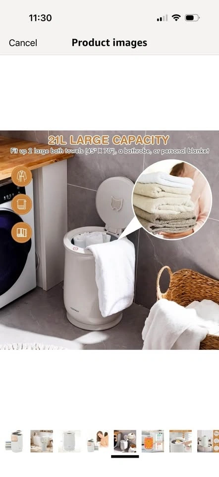 Brand new in box! This ultra large capacity 21L towel warmer fits 2 oversized towels, blankets, bathrobes, and more. It heats up quickly, reaching 266°F in 15 minutes for evenly warmed items. The galvanized sheet inner provides great heat preservation for a spa-like experience. Features a flip-top lid with a built-in handle and a single button for operation. Includes a detailed manual. The warmer has a 60-minute heating cycle and auto shut-off for safety, with a hot surface indicator when the interior exceeds 122℉.