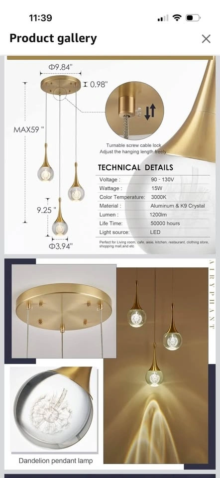 New-3 Light Gold Pendant Lighting (dandelion lamp)