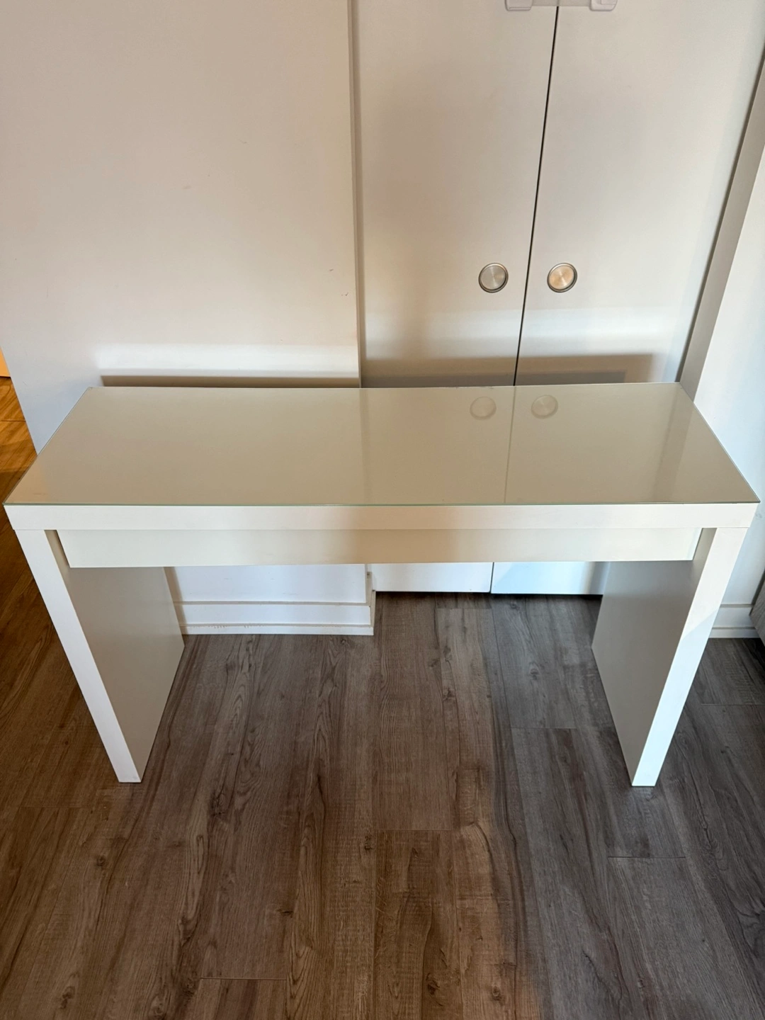 IKEA malm vanity table, it’s still good to use, a scratch in the back from movers and not noticeable at all since it’s against the wall. Drawers are clean. Glass top as well. Pick up by the Eaton Center at my condo. $20.