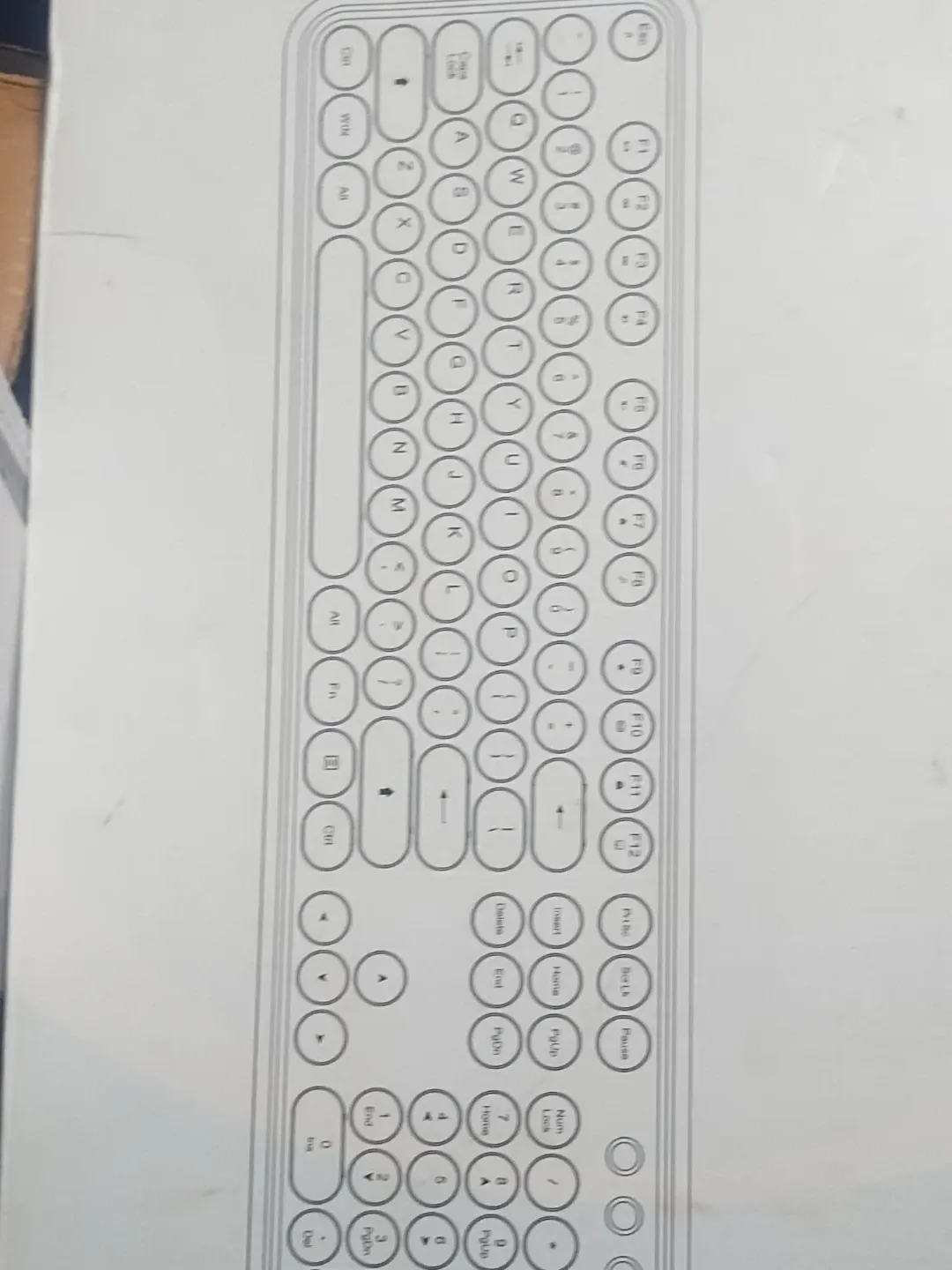 This is a white wireless keyboard with round, retro-style keys. It features a full layout including a number pad and function keys. The keyboard is designed for comfortable typing and a unique aesthetic.