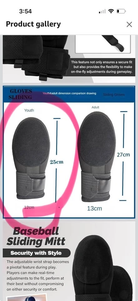 Brand new! I have a few available. This Histarstore5 baseball mitt is designed to enhance player performance by providing full hand and thumb protection during slides. Made with comfortable materials for smooth and controlled sliding movements. It can be worn on either the right or left hand, offering full protection. Perfect for both left- and right-handed players. Youth size measures 9.85" L x 4.73" W x 1.75" H. Crafted from premium neoprene and elastic materials for a comfortable, snug, and secure fit. Features an adjustable wrist strap for a customized fit.