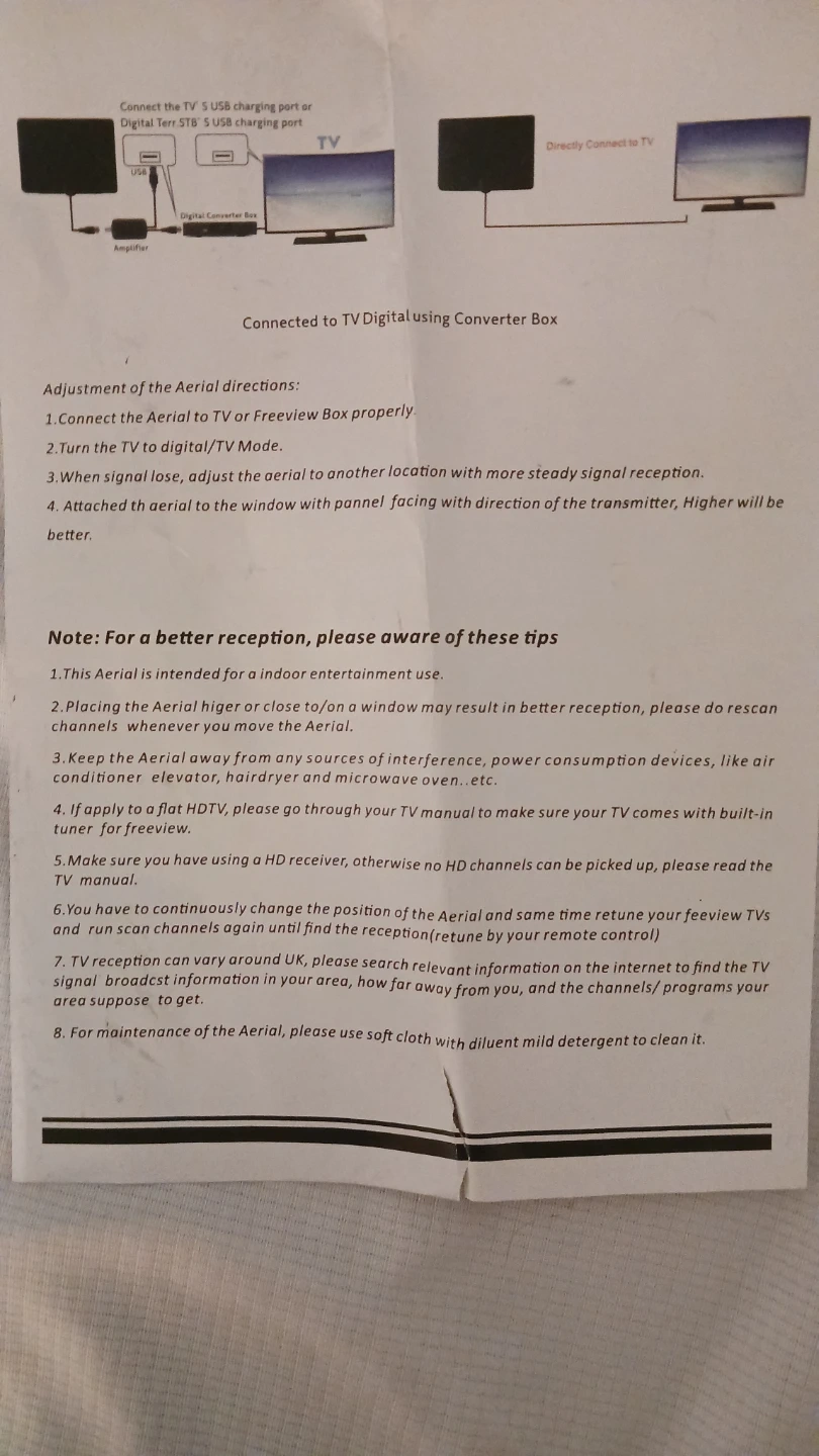 2 Freeview Indoor TV Aerial for better reception. High-quality amplifier ensures a better signal, even in areas with inferior signal reception. Compatible with HDTV digital terrestrial (DVB-T, ISDB-T, DMB-T/H, ATSC) and DAB/FM radios. Simply connect directly to your TV or Set Top Box.
