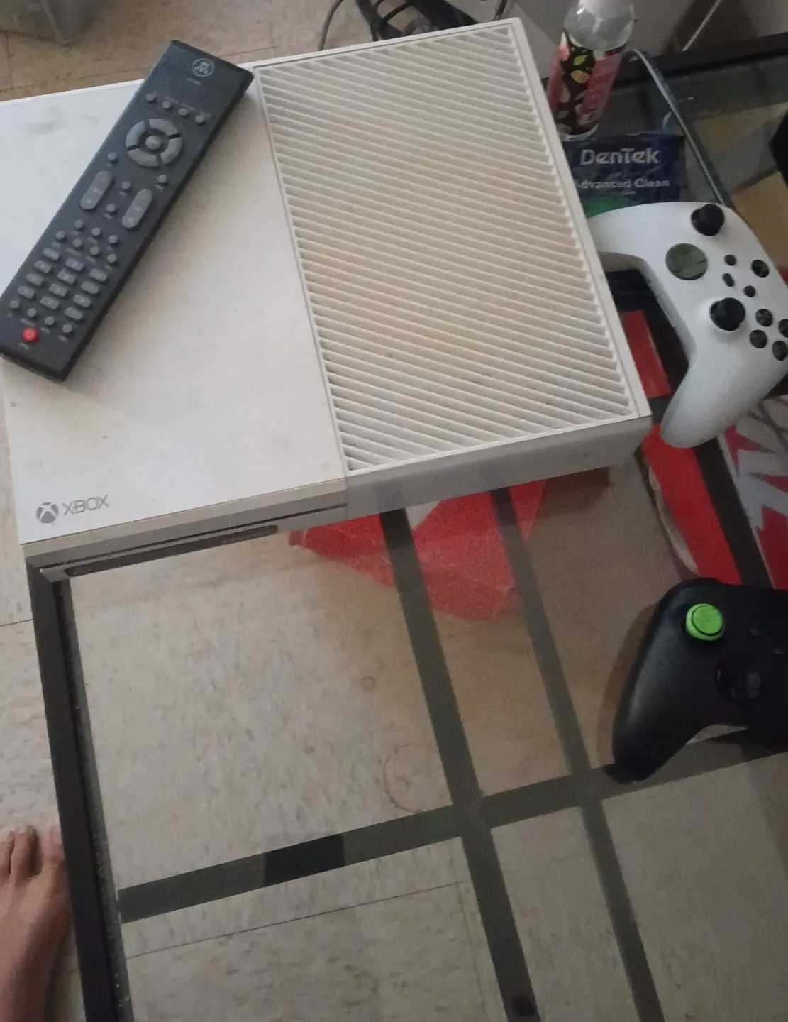 White Xbox One Console with a Controller no back peace