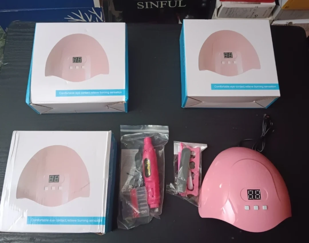 Rohs professional gel polish led nail dryer lamp. with a digital display. It's designed for comfortable eye contact and relieving burning sensations. Comes with a portable nail drill. Dryer lamp and other accessories