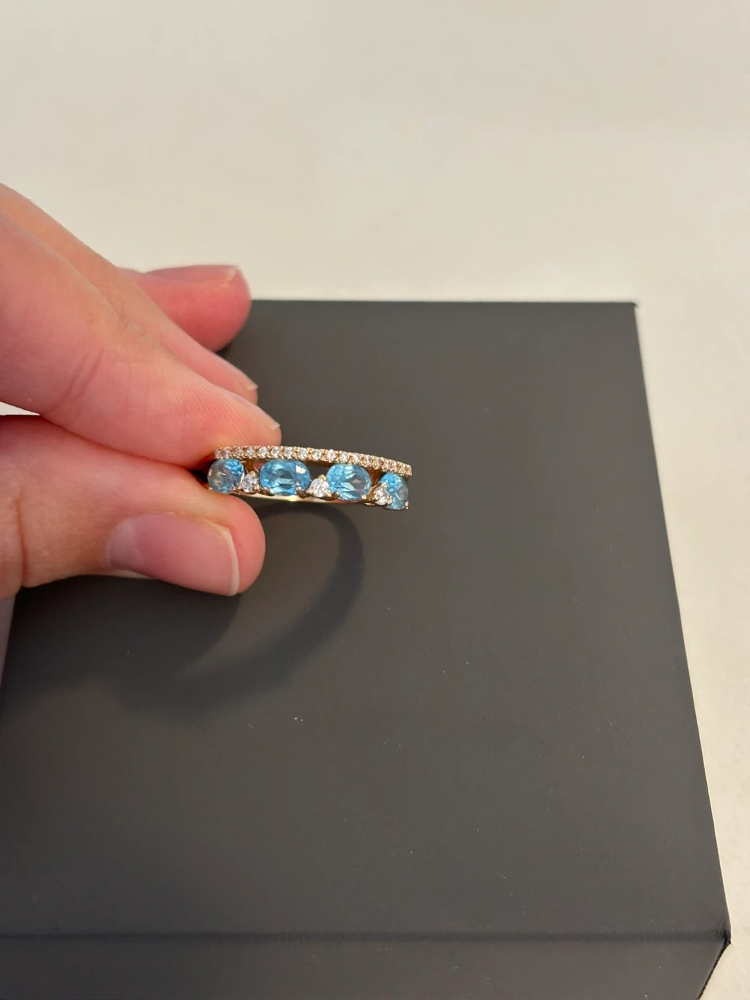 14K Solid Rose Gold Ring with Topaz and Cubic Zirconia.