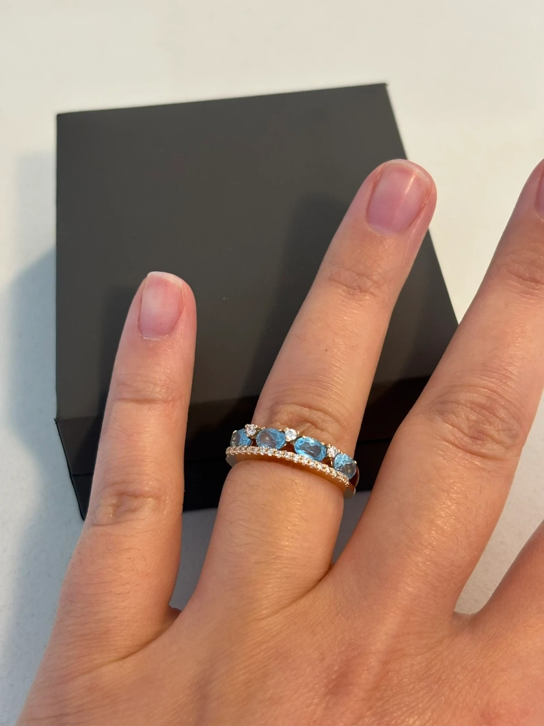 14K Solid Rose Gold Ring with Topaz and Cubic Zirconia
