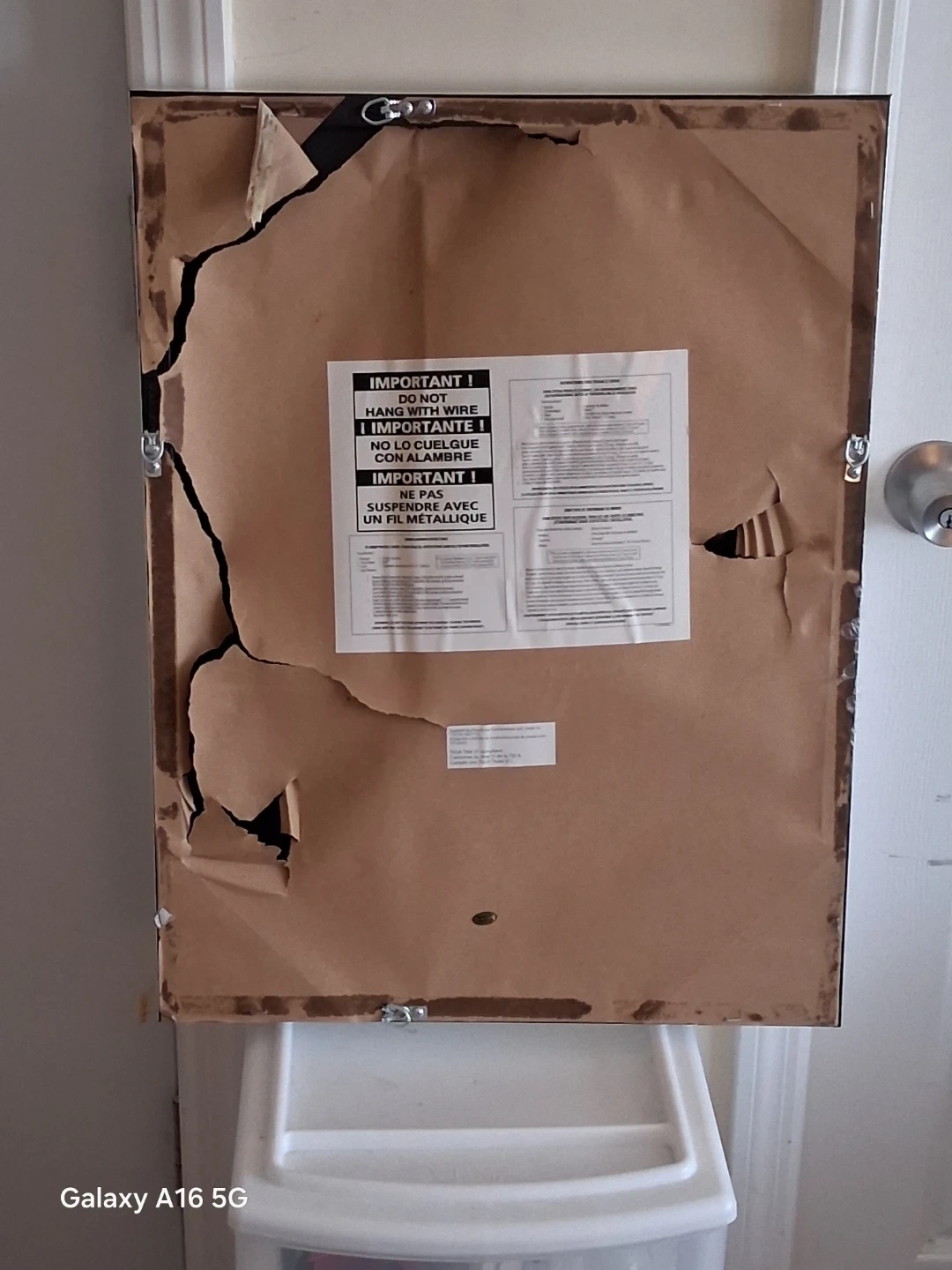 This is a framed wall mirror. It has a silver-toned frame. The paperback has some wear but the mirror itself is intact.