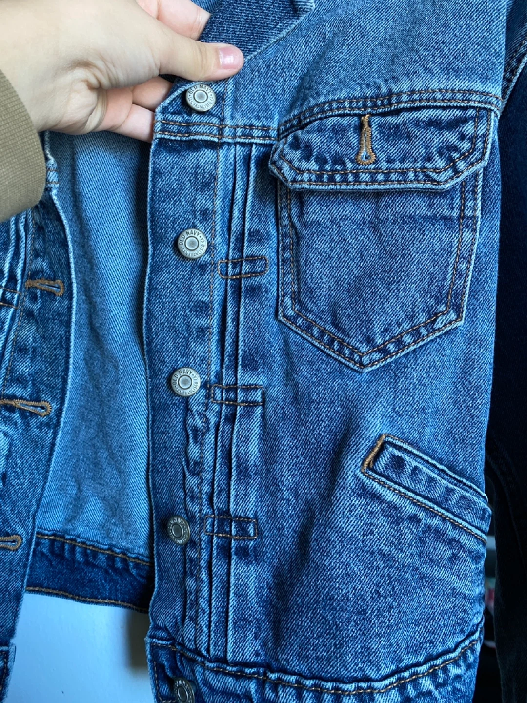 Buy & SellOld Navy Denim Jacket - Size MOld Navy Denim Jacket - Size M$4Classic blue denim jacket from Old Navy. It's a size medium and made in Bangladesh. This jacket has a button-up front and chest pockets.ConditionLike newSizeMBrandOld NavyWHERE TO MEETCheck LocationView MapSELLERverifiedReignCedarbrae Mall65468 reviews0 chats·0 favorites·32 viewsSEND CHAT TO SELLERHi Reign! I’m interested in your listing.Hi Reign! I’m interested in your listing.Get the Karrot app to chatSign In to chat